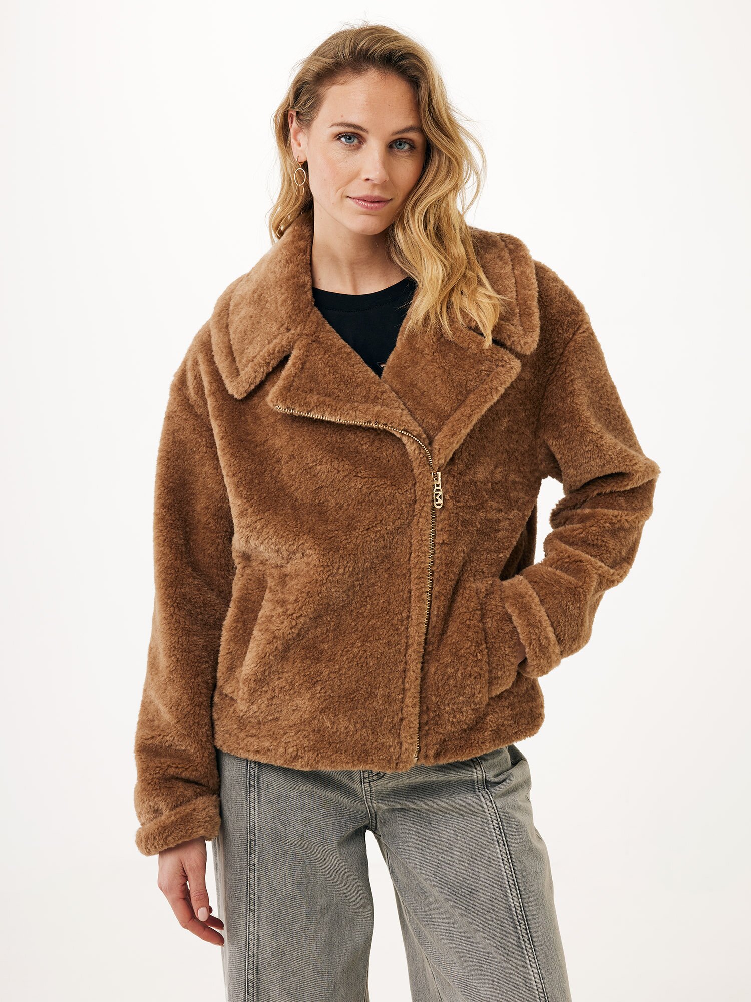 De bruine teddy jas is gemaakt van zacht polyester en biedt een warme en comfortabele uitstraling. Met zijn tan kleur en ritssluiting combineer je hem makkelijk met verschillende outfits. De jas heeft ruime zakken die zowel stijlvol als praktisch zijn. Ideaal voor een casual dagje uit. Combineer de jas met een losse jeans en sneakers voor een trendy en relaxte look. Bekijk meer over dameskleding opMexx Dames Kleding.