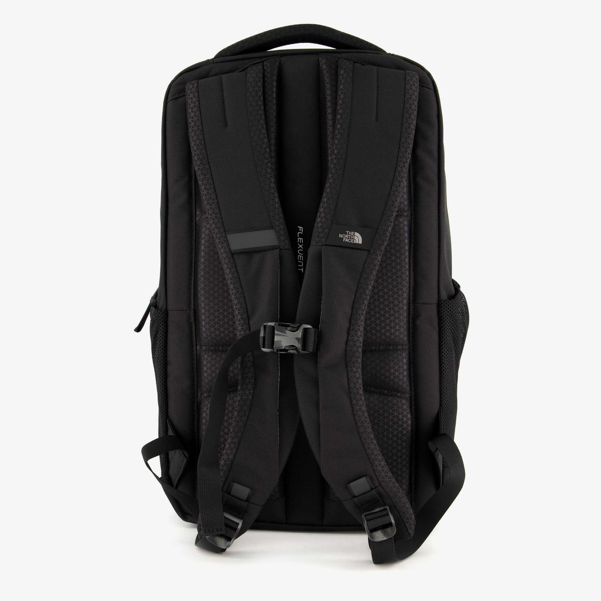The North Face Vault rugzak. Het FlexVent™-draagsysteem, gecertificeerd door de American Chiropractic Association, biedt optimale ondersteuning dankzij injectiegevormde schouderbanden, een zacht gewatteerd rugpaneel en een ademend onderrugpaneel. Twee webbinghandgrepen zorgen voor eenvoudig openen en een goed uitgebalanceerd draagcomfort – de tas blijft netjes tegen je lichaam, zelfs tijdens het lopen. Bovendien staat de rugzak zelfstandig, wat in- en uitladen een stuk makkelijker maakt. Binnenin vind je een gewatteerde 15″ laptophoes, een ruim hoofdvak voor boeken en mappen, en een georganiseerd voorvak met ritsvakken, tablethoes en sleutelhaak. Aan de buitenkant zitten twee waterflesvakken, daisychain-bevestigingspunten en reflecterende details rondom voor extra zichtbaarheid. Afmetingen: 27.9 cm x 21,6 cm x 45,7 cm met een inhoud van 27 liter.