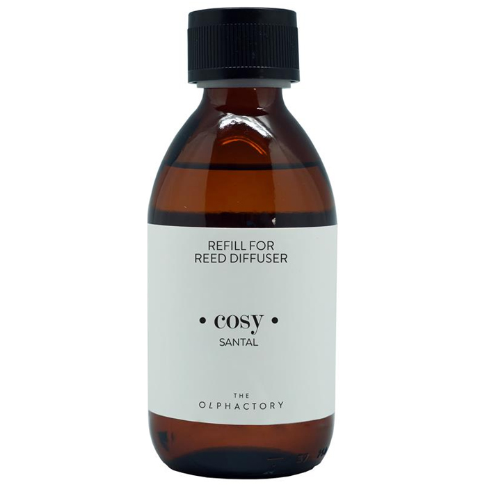 Kun je geen genoeg krijgen van de heerlijke geuren van The Olphactory? Hergebruik dan je glazen geurdiffuser met deze handige navulling. De navulling heeft een inhoud van 250 ml.Cosy Santal is een oriëntaalse, houtachtige geur die pure kracht en rust uitdrukt en die je huis een gezellige, warme sfeer geeft.