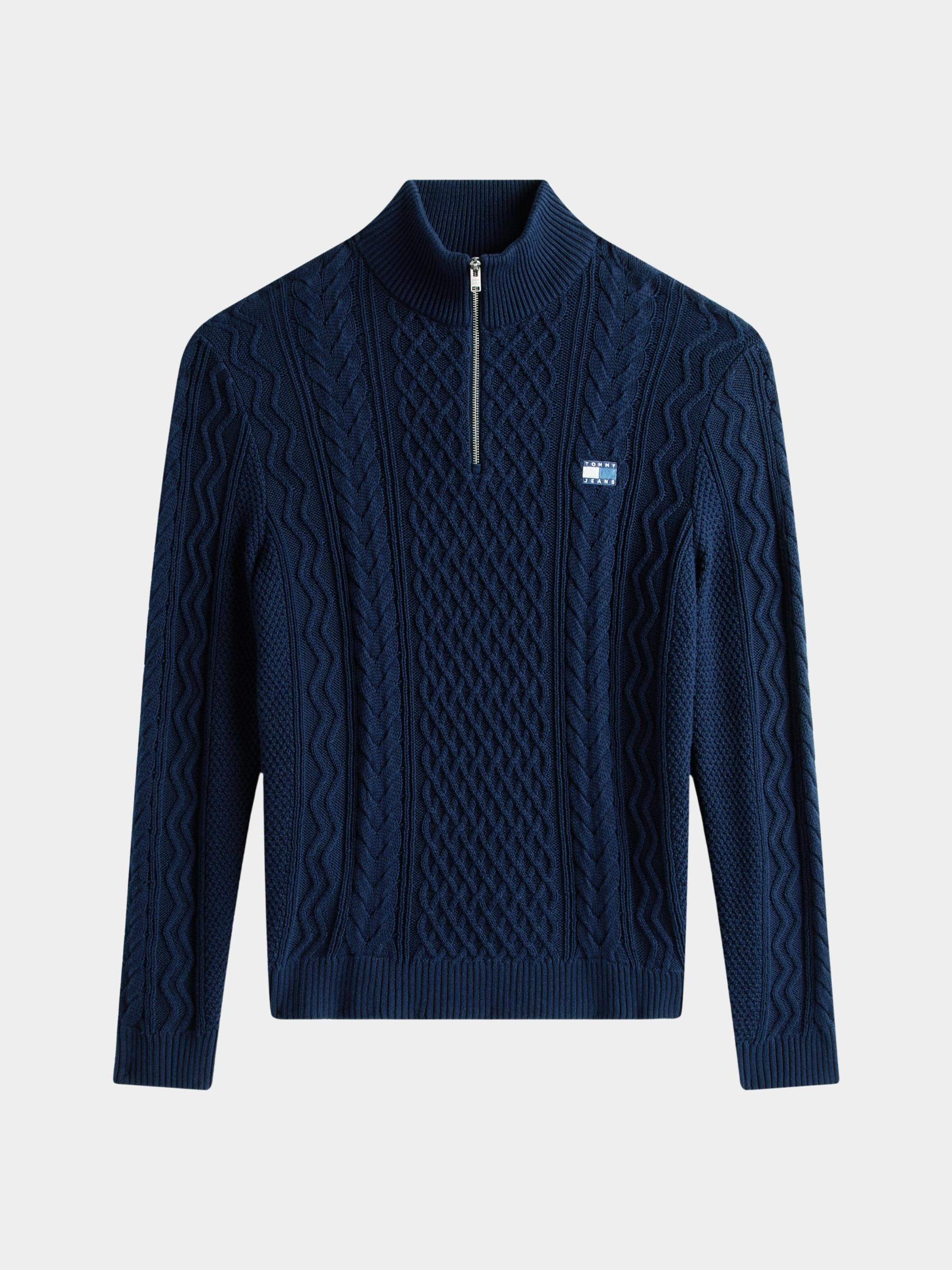 Ontdek de veelzijdige blauwe trui van Tommy Jeans, ideaal voor het komende herfst/winterseizoen en onmisbaar in de garderobe van elke moderne man. Deze trui met half zip combineert stijl en comfort op een moeiteloze manier. Gemaakt van 100% biologisch katoen, niet alleen trendy maar ook duurzaam. De trui straalt casual elegantie uit en is perfect voor dagelijks gebruik of voor een meer formele gelegenheid. Dankzij de hoogwaardige materialen en vakmanschap van Tommy Jeans bent u verzekerd van een kwaliteitsproduct dat lang meegaat. Kies voor deze blauwe trui om uw looks een eigentijdse twist te geven. Bestel nu en geniet van de optimale combinatie van comfort en stijl die deze Tommy Jeans trui u biedt.
