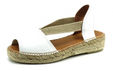 Witte espadrille artikel Etna van het Spaanse schoenenmerk Toni Pons. Deze espadrilles zijn gemaakt van leer en de elastische banden zorgen voor een perfecte pasvorm. Het leer is stevig gestikt aan de met touw omvlochten plateauzool. Koop jouw Toni Pons espadrilles online bij Stoute Schoenen ©.