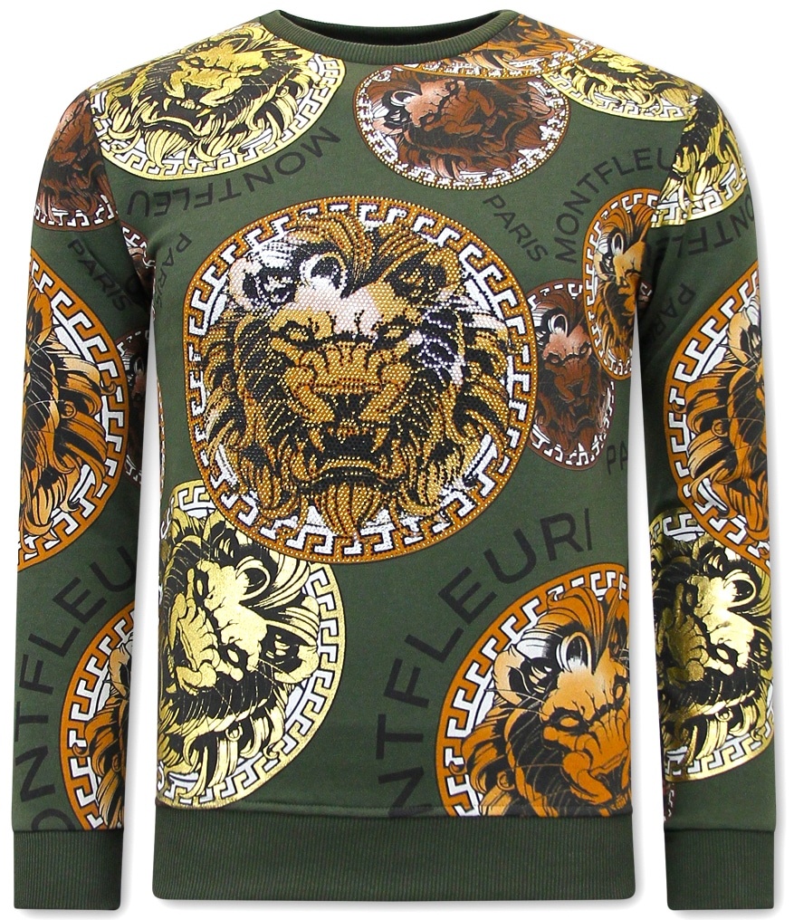 Heren Sweater met Print – Leeuw Head – 3727 – Groen – Specificaties:- Heren Sweater met Print – Leeuw Head – Artikelcode:3727-Groen- Kleur: Groen- Seizoen: Voorjaar / Najaar- Kraag: Ronde Kraag- Mouwen: Lange Mouw- Patroon: Print, Rhinestone- Kwalitatief: Hoogwaardige Afwerking- Materiaal: 84% Katoen en 16% Lycra- Weefsel: Geweven- Pasvorm: Getailleerd Italiaans- Wasvoorschrift: Handwas, Binnenste buiten wassen (Niet in de droger)- Beschikbare maten: S – M – L – XL – XXL