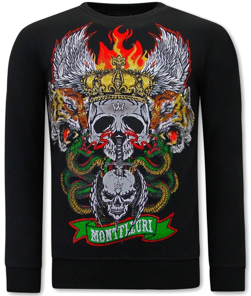 Heren Sweater met Print – Skull Head – 3662 – Zwart – Specificaties:- Heren Sweater met Print – Skull Head – Artikelcode:3662-Zwart- Kleur: Zwart- Seizoen: Voorjaar / Najaar- Kraag: Ronde Kraag- Mouwen: Lange Mouw- Patroon: Print, Rhinestone- Kwalitatief: Hoogwaardige Afwerking- Materiaal: 84% Katoen en 16% Lycra- Weefsel: Geweven- Pasvorm: Getailleerd Italiaans- Wasvoorschrift: Handwas, Binnenste buiten wassen (Niet in de droger)- Beschikbare maten: S – M – L – XL – XXL
