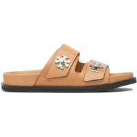 Tory Burch sandalen zijn vervaardigd uit hoogwaardig 100% koeienleer, aangevuld met een duurzame rubberen zool. Het ontwerp heeft brede banden en een minimalistische silhouet, verrijkt met metallic accenten voor een vleugje elegantie. Ideaal voor informele uitjes en zomerevenementen, bieden deze sandalen de perfecte mix van comfort en stijl.Specificaties:- Materiaal: 100% koeienleer- Zool: Duurzaam rubber- Bandontwerp: Brede banden- Stijl: Minimalistische silhouet- Accenten: Decoratieve metalen details- Gebruik: Informele uitjes en zomerevenementen
