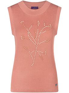 Tricottop van TALBOT RUNHOF X PETER HAHN met ronde hals. Zacht, elastisch tricot van 72% viscose, 28% polyamide met een gestileerd bloemmotief van opgestikte, ton sur ton kralen. Lengte ca. 58 cm. Machinewasbaar. speciale fijnwas tot 30°. chloorbleken niet mogelijk. koud strijken. chemische reiniging, veilig. drogen in de droger niet mogelijk. 40, 42, 44, 46, 48