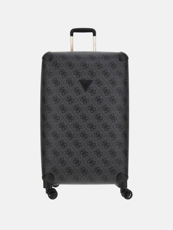 Trolley van synthetisch materiaal.Sluiting met rits.Licht-goudkleurige metalen onderdelen.4G-logoprint.Slot met combinatie.Binnenzakken.Driehoeklogo van metaal op de voorkant.