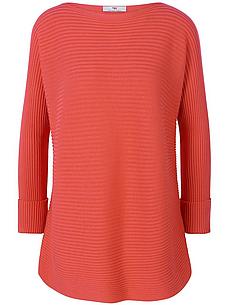 PETER HAHN trui met een bateauhals en kleine omslag aan het einde van de 1/1 vleermuismouw. Casual stijl in een lichtgewicht geribd breisel in de nieuwste boxy stijl. 55% katoen (biologisch), 45% viscose. Lengte ca. 56 cm. Machinewasbaar. fijnwas tot 30°. chloorbleken niet mogelijk. warm strijken. chemische reiniging. drogen in de droger niet mogelijk. 36/38, 40/42, 48/50