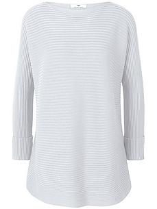 PETER HAHN trui met een bateauhals en kleine omslag aan het einde van de 1/1 vleermuismouw. Casual stijl in een lichtgewicht geribd breisel in de nieuwste boxy stijl. 55% katoen (biologisch), 45% viscose. Lengte ca. 56 cm. Machinewasbaar. fijnwas tot 30°. chloorbleken niet mogelijk. warm strijken. chemische reiniging. drogen in de droger niet mogelijk. 36/38, 40/42, 48/50