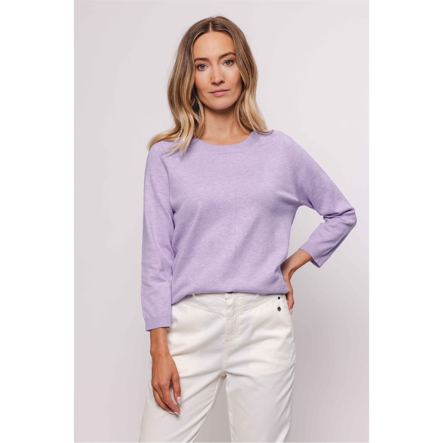 Fijn gebreide trui in viscose mix garen. Deze trui heeft een raglan mouw, ronde hals en speels splitje aan de achterzijde.