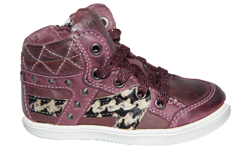 Leuke meisjes schoen in de kleur bordo met een dierenprint en stinst