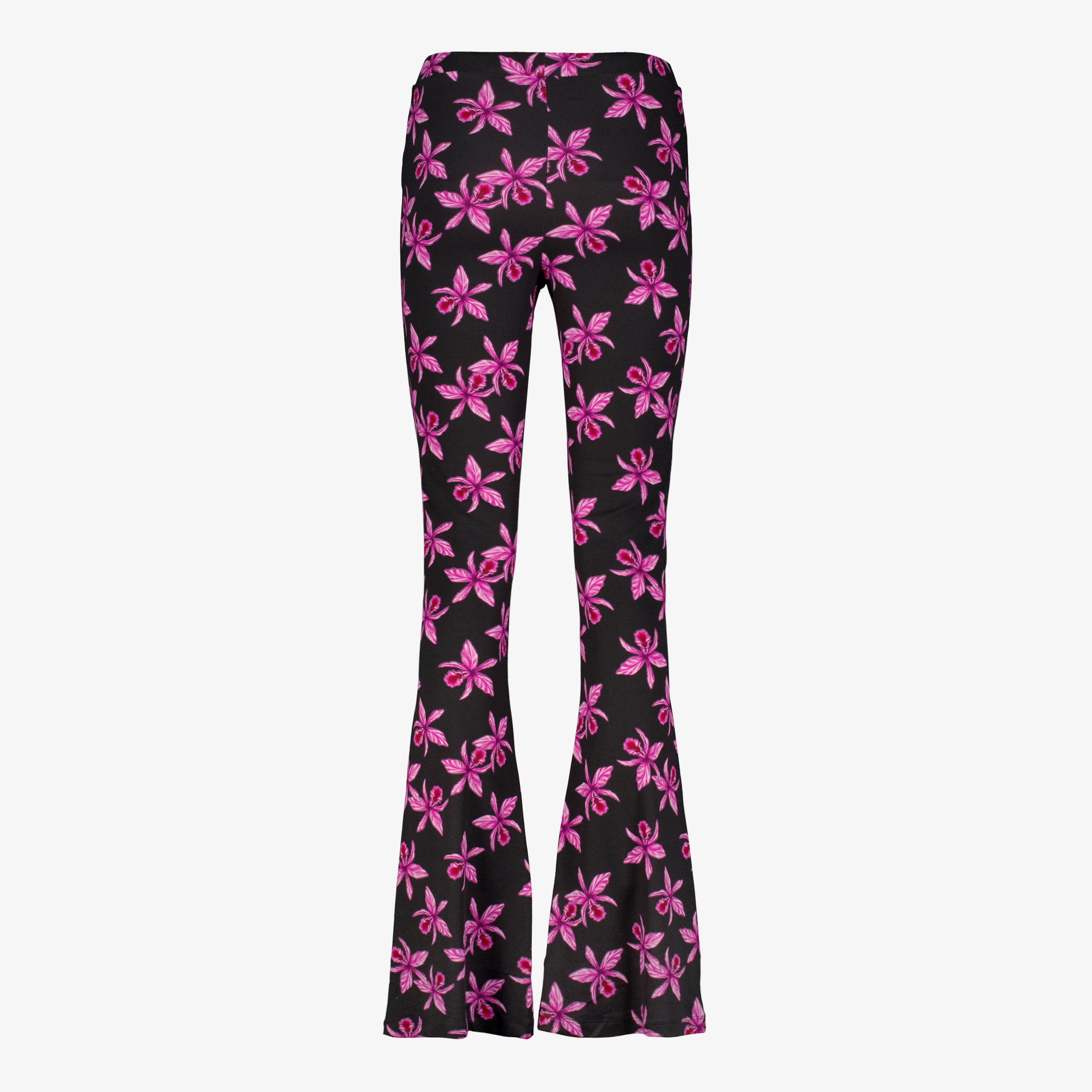 Zwarte flared broek met een roze bloemenprint voor dames uit de TwoDay collectie. Voorzien van een elastische tailleband en wijde broekspijpen. Gemaakt van 96% polyester en 4% elastaan.