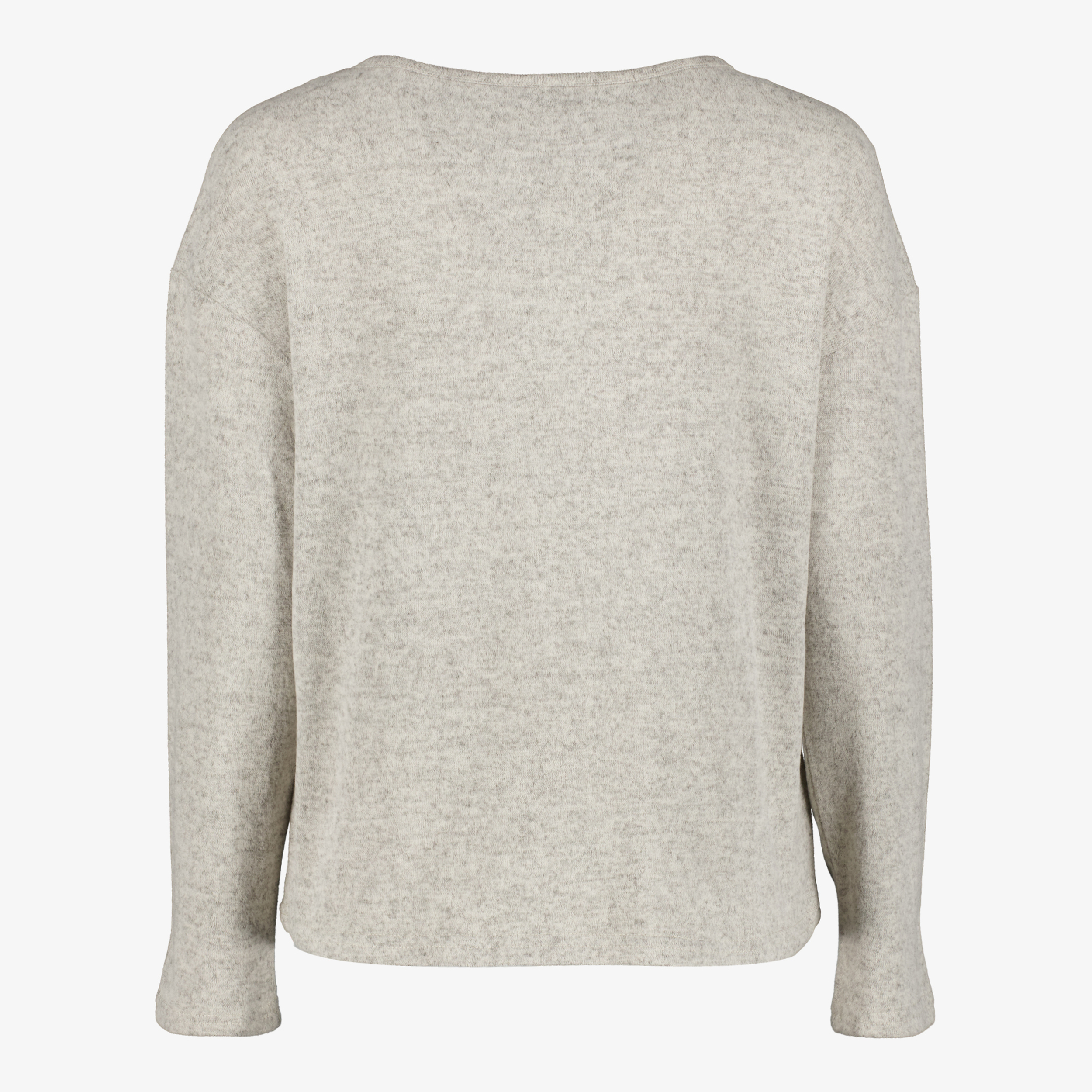 Grijze trui met zilverkleurige strass steentjes voor dames. Voorzien van een ronde hals en lange mouwen. De trui is gemaakt van 95% polyester en 5% elastaan.