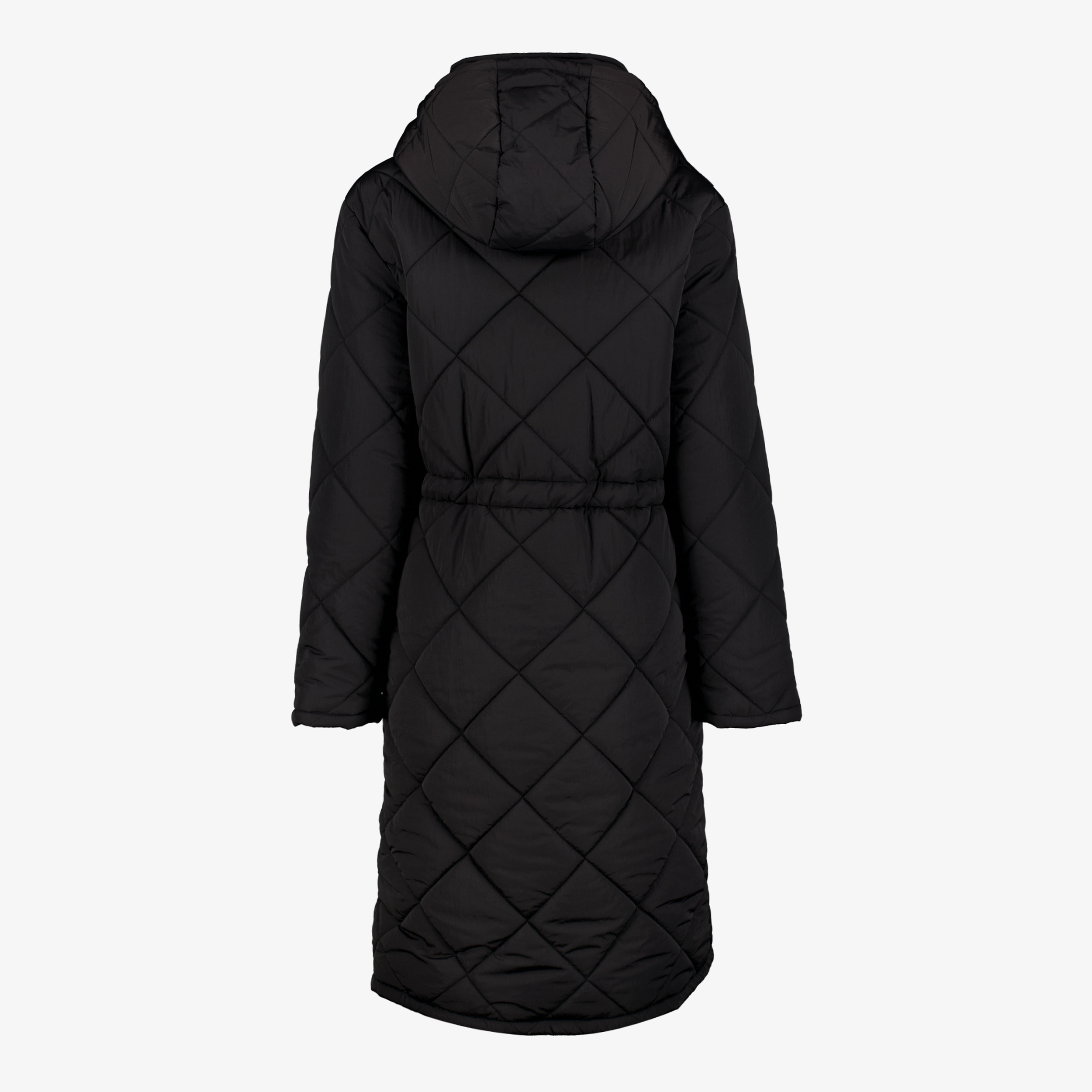 Warme, lange winterjas van het merk Twoday. De jas heeft een geruit patroon, heeft een capuchon en kan worden aangesnoerd in de taille. Gemaakt van 100% nylon.