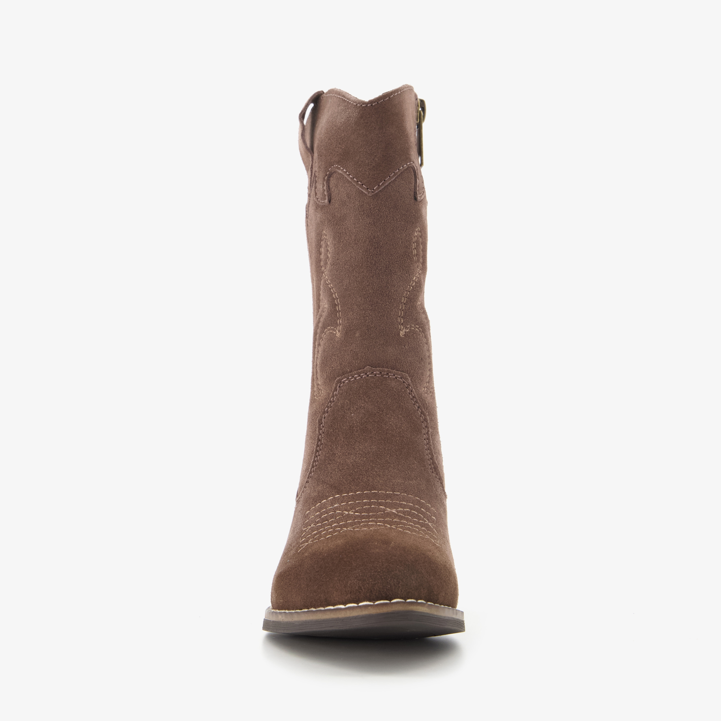 Bruine western laarzen voor meisjes van TwoDay. Gemaakt van suède, een binnenwerk van textiel en een stevige zool. De laarzen hebben aantreklusjes aan de bovenzijde voor een makkelijke instap. Het comfortabele voetbed is gemaakt van leer. Deze is niet uitneembaar. De western laarzen hebben een dessin op de schacht en een lage hak van circa 4 centimeter. De schachthoogte is 18 cm.