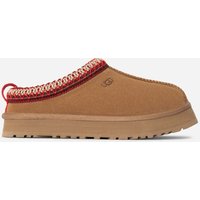 Dit is het klompje waar je altijd al naar op zoek was. De plateauzool geeft een opgetild gevoel, terwijl het eigenlijk een heel degelijke instapper is. De weelderige UGGplush™-voering en -inlegzool hullen de voetjes in dromerige zachtheid en houden ze droog. En het speelse UGGbraid™-accent geeft die specifieke look die alleen UGG je geeft en die alleen jij kan dragen. Creëer een grappig mini-me-momentje met ons model voor volwassenen. Dit is zo’n moment waarop we in alle eerlijkheid kunnen zeggen: hou je van de Tasman, dan hou je van de Tazz. Dit product is gemaakt in een fabriek die vrouwen in onze toeleveringsketen ondersteunt met hulp van het HERproject. Dit samenwerkingsinitiatief gaat partnerschappen aan met merken zoals het onze om de zelfredzaamheid en opleidingsmogelijkheden van vrouwen op de werkvloer te stimuleren. | UGG® Tazz voor kinderen in Brown, Maat 32.5, Suede