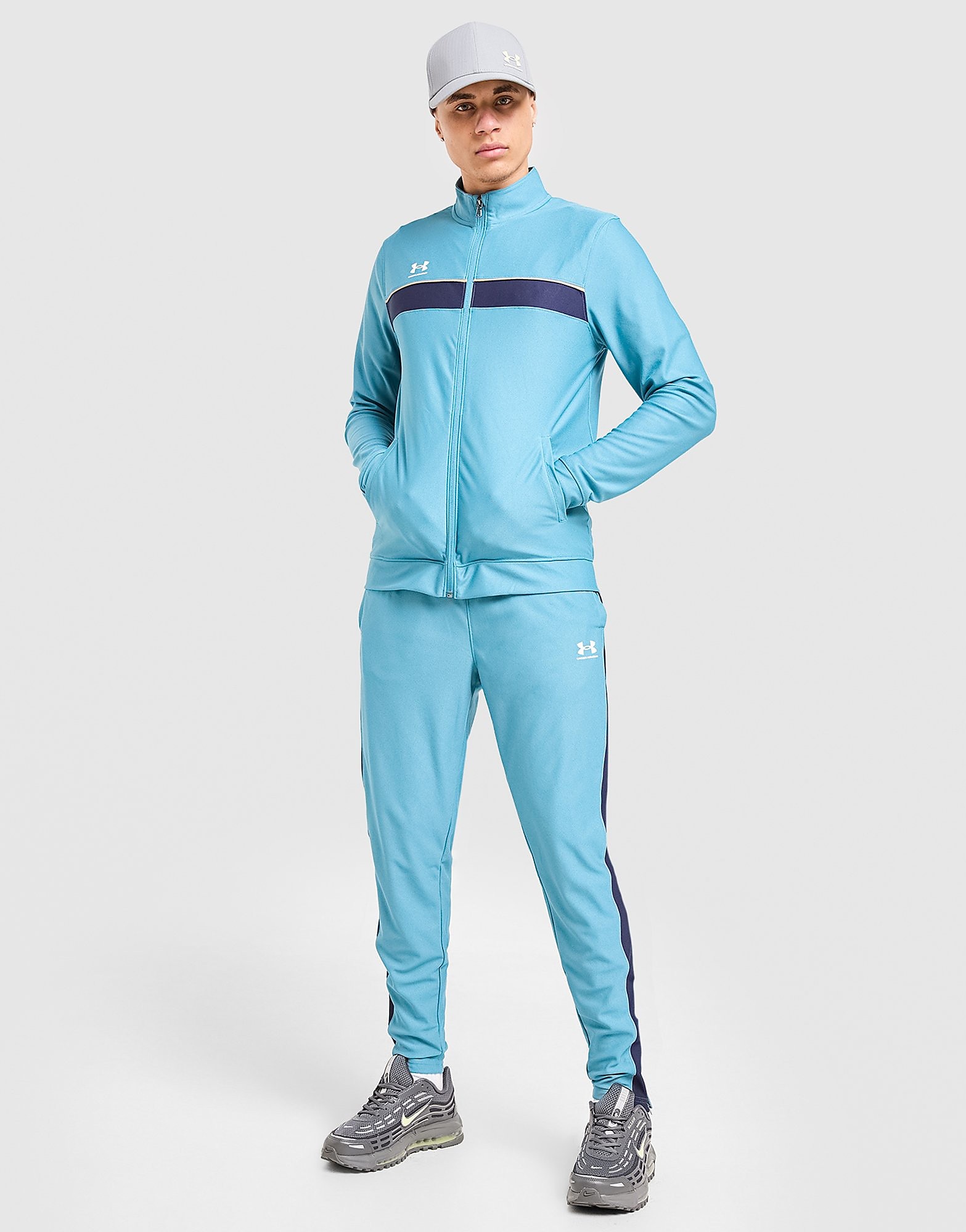 Van trainingsdagen tot rustdagen, dit Under Armour Challenger trainingspak voor heren biedt je altijd comfort. Deze tweedelige set in zwart is gemaakt van een lichte, luchtige gebreide stof. Het is on…Van trainingsdagen tot rustdagen, dit Under Armour Challenger trainingspak voor heren biedt je altijd comfort. Deze tweedelige set in zwart is gemaakt van een lichte, luchtige gebreide stof. Het is ontworpen om vocht af te voeren en je koel te houden en bestaat uit een trainingsjack met rits en een bijpassende broek. Met een elastische tailleband en taps toelopende pijpen voor een strakke look, en afgewerkt met zakken op beide kledingstukken. Afgewerkt met de klassieke Under Armour-logo's. Machinewasbaar. | Ons model is 1,88 m lang, heeft een borstomvang van 94 cm en draagt maat M.. Material: 100% polyester