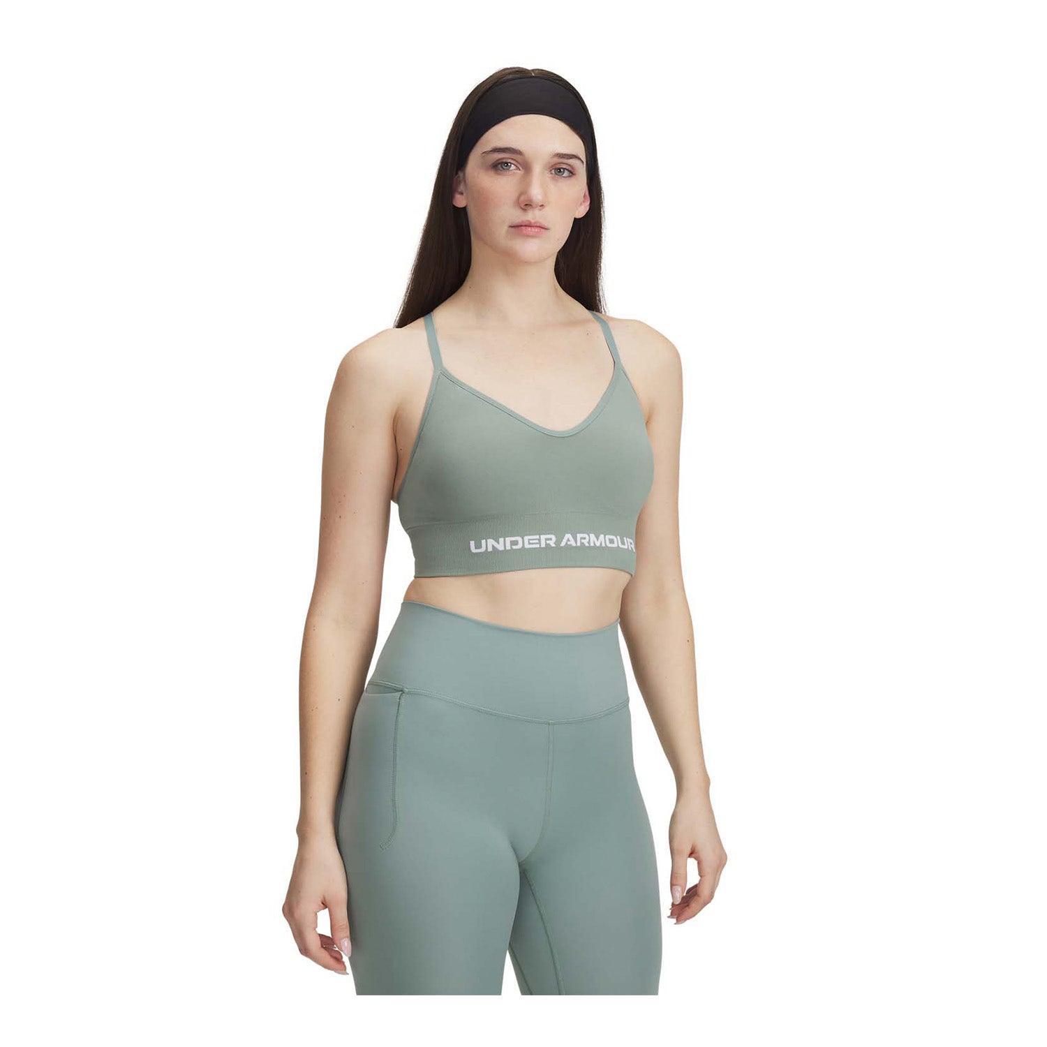 Bereid je voor op je volgende workout met de Vanish Seamless sport-bh voor dames van Under Armour. Deze sport-bh in een zwarte kleur is gemaakt van soepel en elastisch materiaal voor maximaal comfort. De smalle, verstelbare bandjes zorgen voor een stevige pasvorm, terwijl de racerback een sportieve uitstraling geeft. Dankzij de elastische band rondom de taille blijft de bh goed op zijn plek zitten. Afgewerkt met het iconische Under Armour-logo op de borst, is dit de perfecte keuze voor elke trainingssessie.