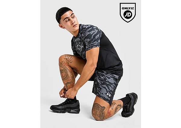 Ga trainen in deze Woven Camo Shorts voor heren van Under Armour. Deze exclusieve JD-short is zwart met een ton-sur-ton camouflageprint en gemaakt van soepel, zweetafvoerend geweven materiaal. Hij heeft een elastische tailleband met trekkoord voor een verstelbare pasvorm. En zijzakken voor extra opbergruimte. Alles wat je nodig hebt. Afgewerkt met het kenmerkende Under Armour-logo. Machinewasbaar. | Ons model is 1,85 m lang en draagt maat M.. Material: 100% polyester