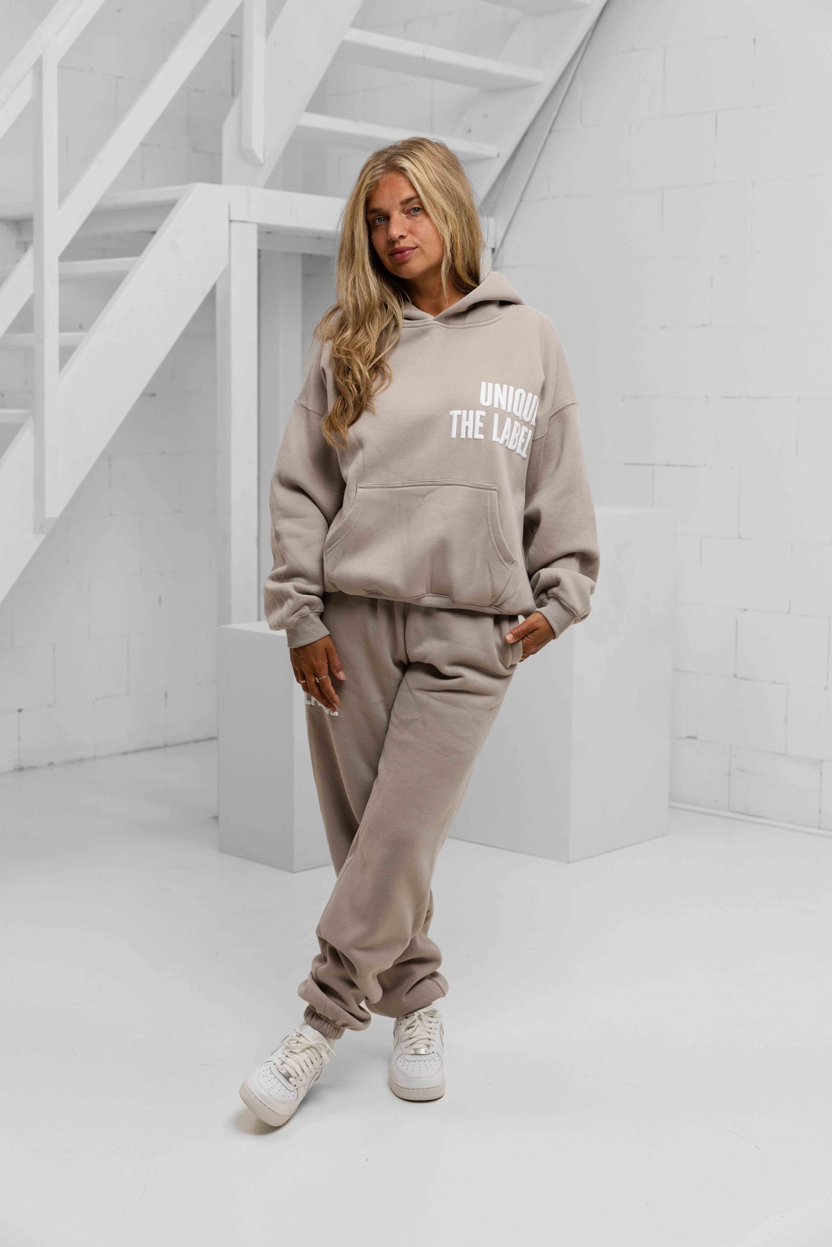 Het Unique The Label Elyana Trainingspak voor dames in de kleur beige is perfect voor het komende lente/zomerseizoen. Gemaakt van een comfortabele mix van katoen en polyester, biedt dit trainingspak zowel stijl als functionaliteit. De lange mouwen en oversized pasvorm zorgen voor een relaxte en casual uitstraling. Het effen patroon en de capuchon geven een trendy touch aan het geheel. Met een kangoeroezak en twee buitenzakken is er genoeg ruimte om je essentials op te bergen. De elastische band en koordsluiting zorgen voor een perfecte pasvorm. Kies voor comfort en stijl met dit Elyana trainingspak van Unique The Label.