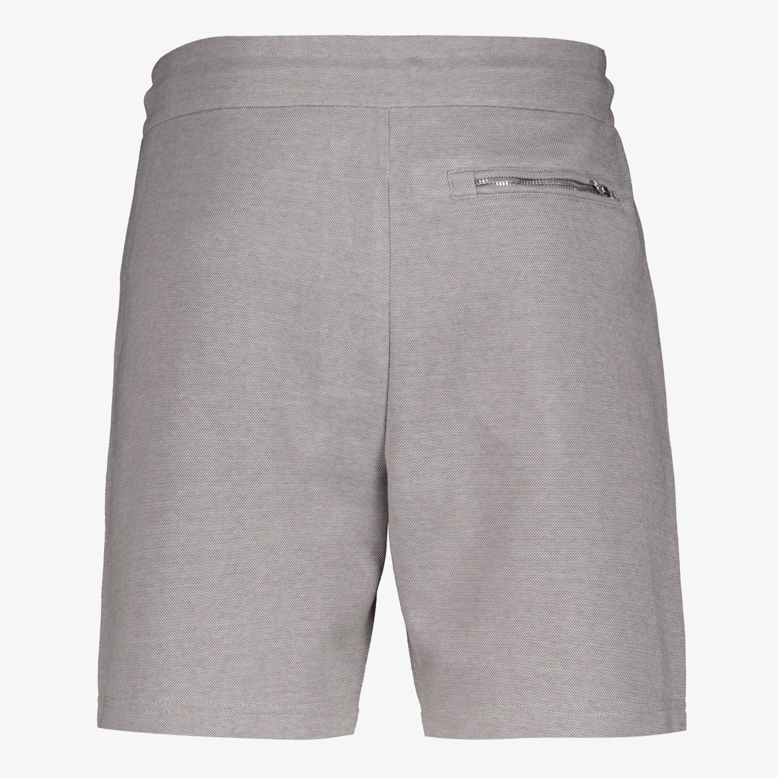 Grijze heren short van Unsigned. Voorzien van een knoopsluiting en aantrekkoordjes. De korte broek heeft twee steekzakken aan de voorzijde en zak met rits aan de achterkant. Gemaakt van 70% katoen en 30% polyetser.