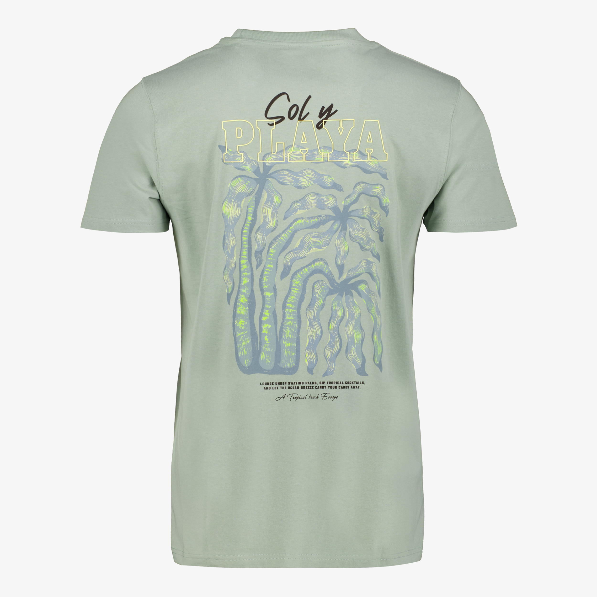 Lichtgroen heren T-shirt met backprint van Unsigned. Voorzien van een ronde hals, korte mouwen en een kleine opdruk op de borst. Gemaakt van 100% katoen.