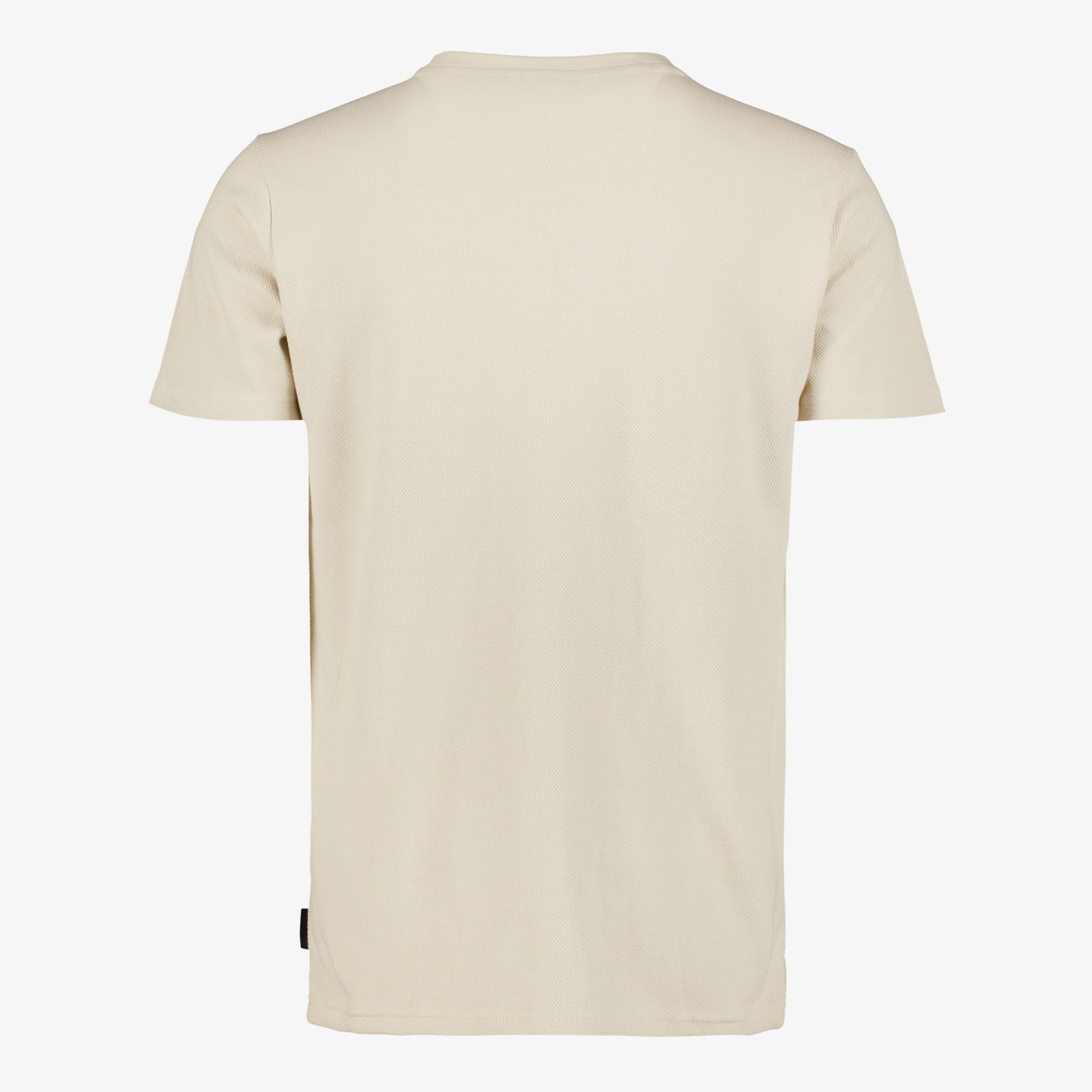 Beige heren T-shirt met borstzakje van Unsigned. Voorzien van een hoge, ronde hals en korte mouwen. Gemaakt van 100% katoen.