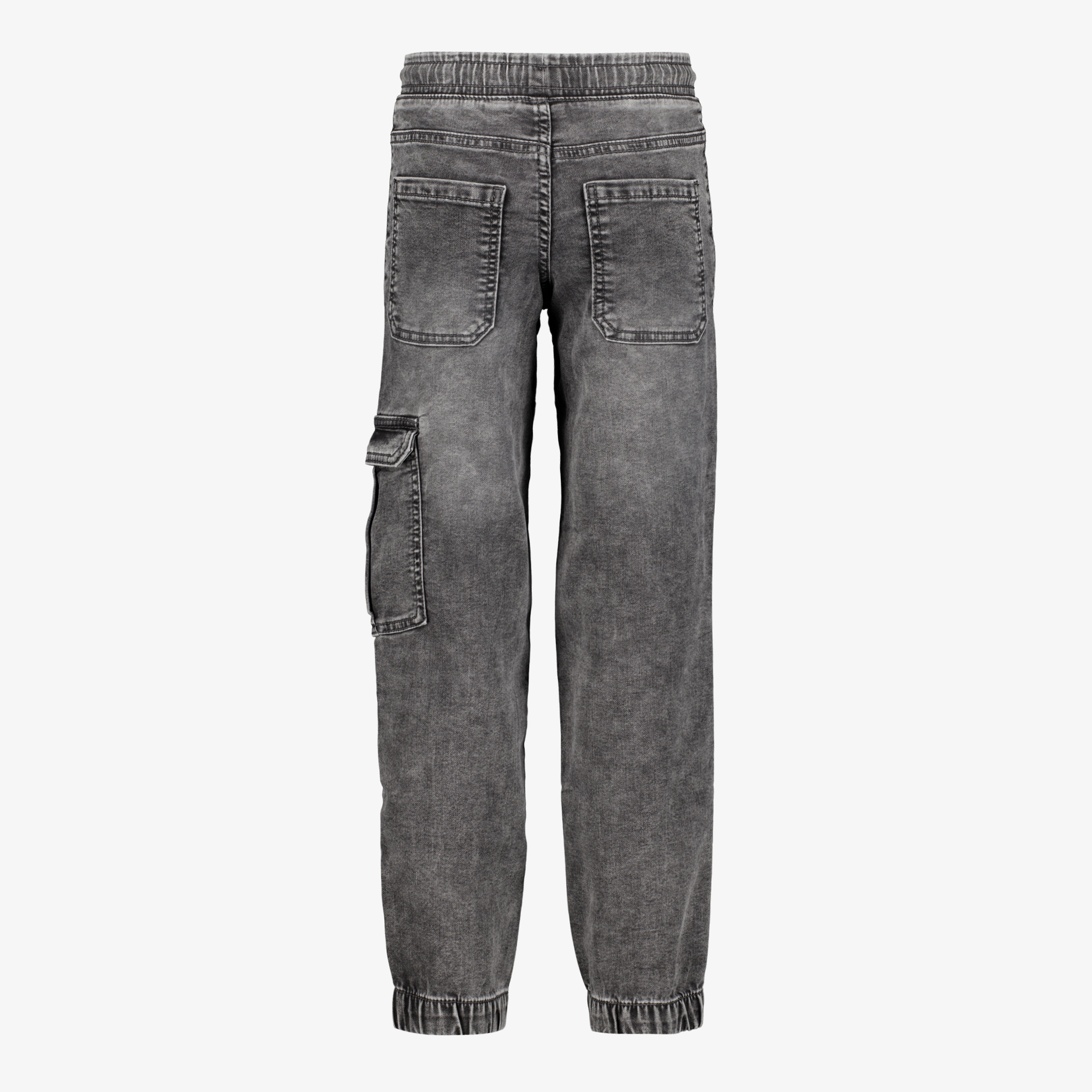 Grijze cargo jeans voor jongens van Unsigned. Voorzien van een elastische tailleband met aantrekkoordjes, twee steekzakken aan de voorzijde en twee achterzakken. De broek heeft een grote klepzak op het bovenbeen en elastische boorden bij de broekspijpen. Gemaakt van 78% katoen, 20% polyester en 2% elastaan.