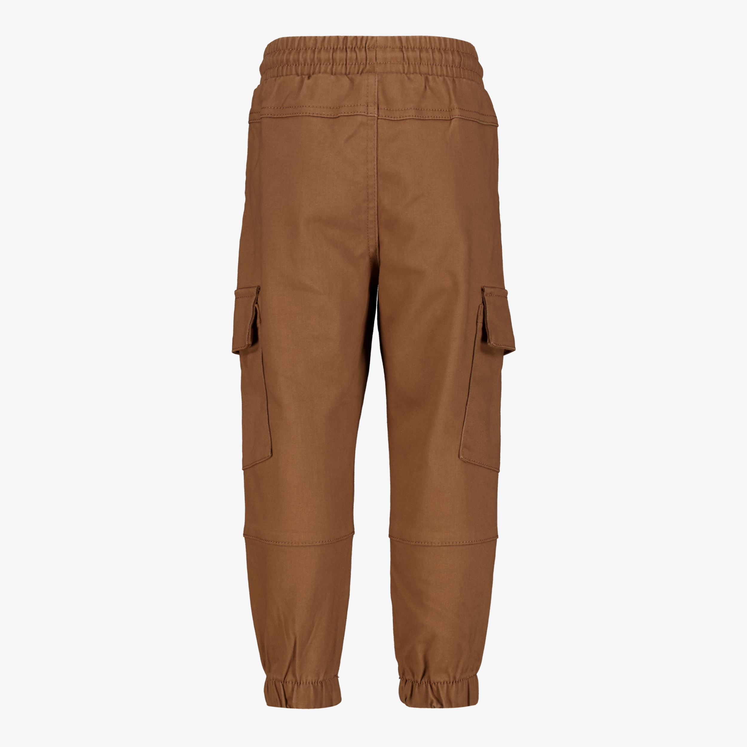 Bruine cargo joggingbroek voor kinderen van Unsigned. Voorzien van een elastische tailleband met aantrekkoordjes, twee steekzakken aan de voorzijde en twee klepzakken op de bovenbenen. De joggingbroek heeft elastiek in de broekspijpen. Gemaakt van 65% katoen, 33% polyester en 2% elastaan.