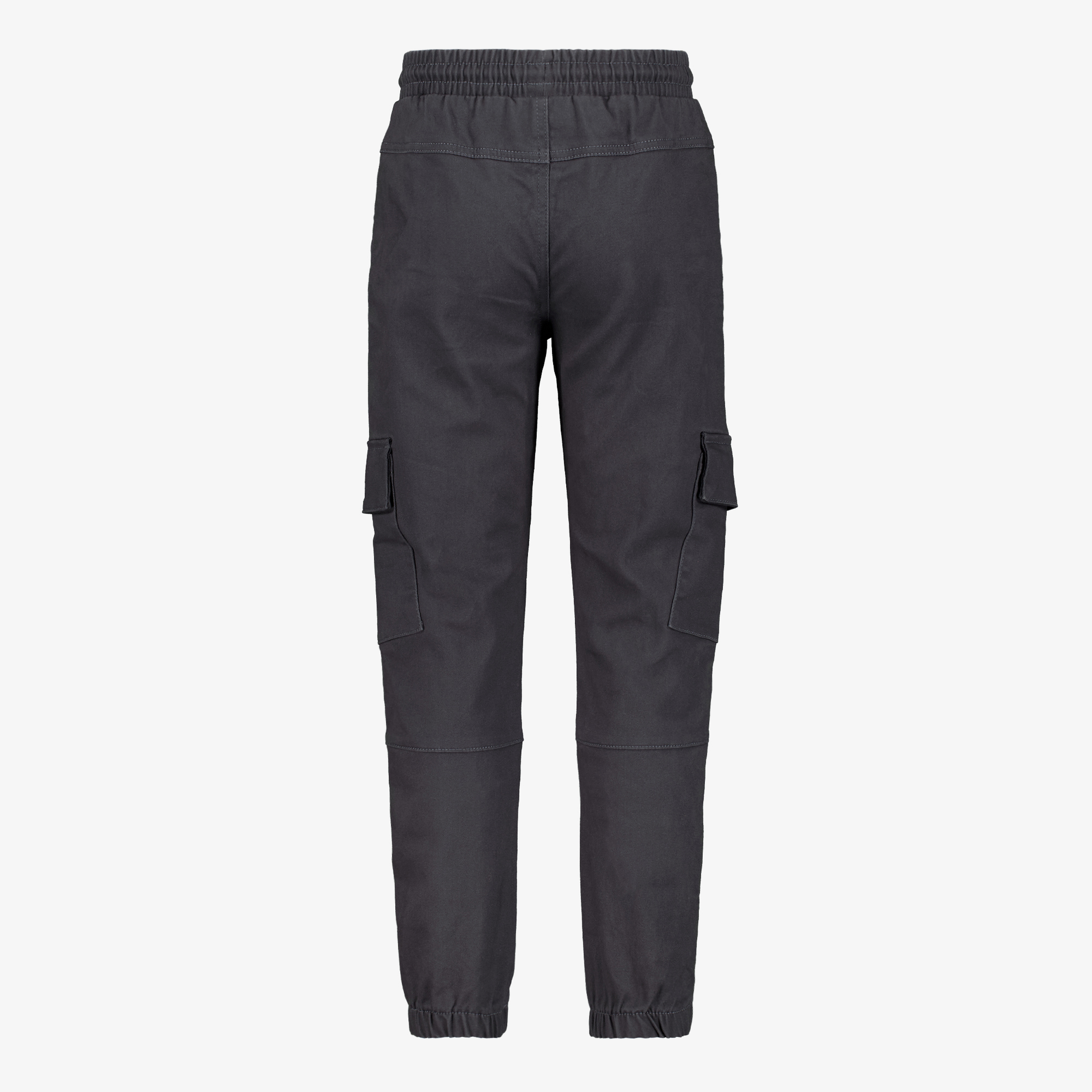 Grijze Unsigned cargo joggingbroek voor kinderen. Voorzien van een elastische tailleband met aantrekkoordjes, twee steekzakken aan de voorzijde en twee klepzakken op de bovenbenen. De joggingbroek heeft elastiek in de broekspijpen. Gemaakt van 65% katoen, 33% polyester en 2% elastaan.