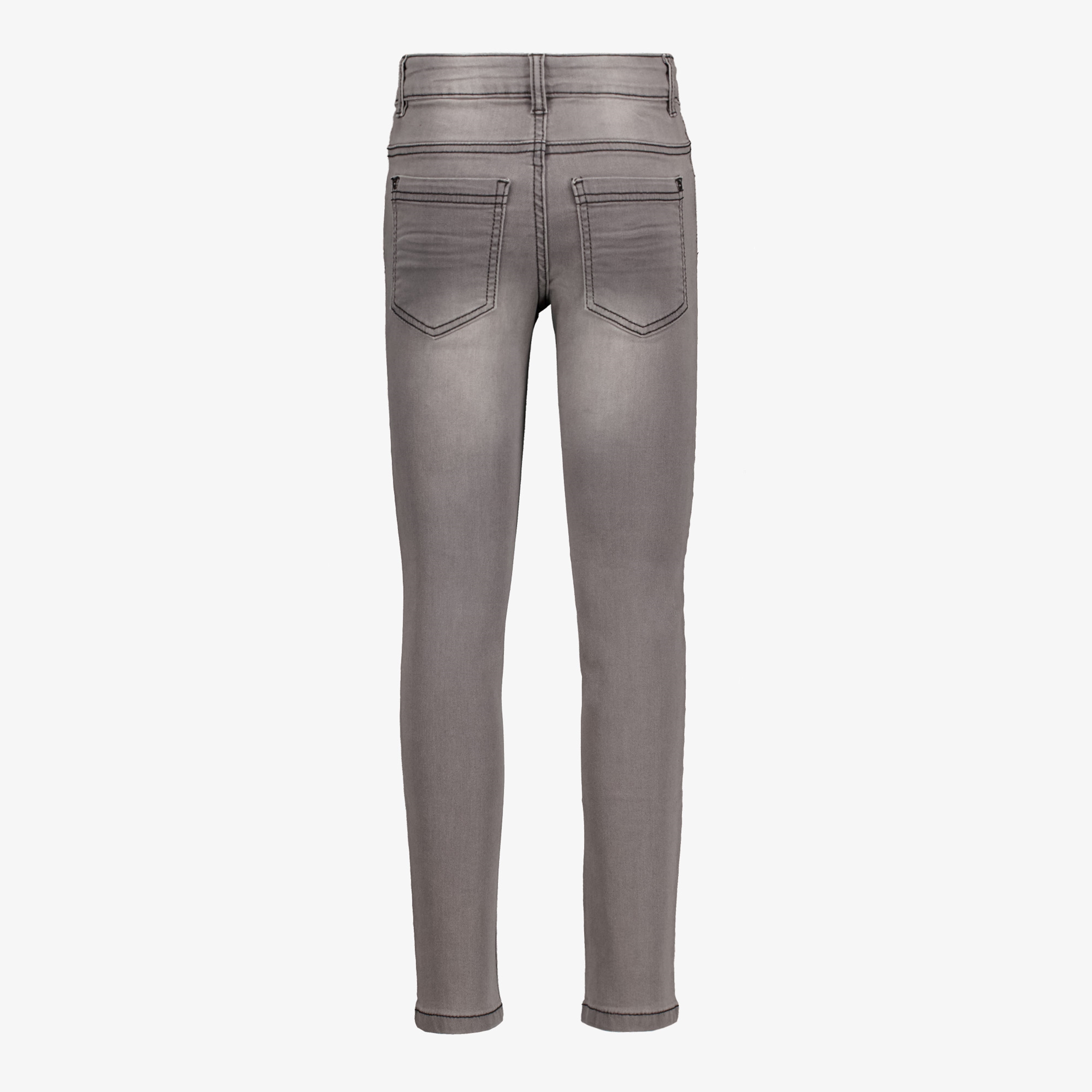 Grijze jongens jeans uit de Unsigned collectie. Voorzien van een knoop- en ritssluiting en riemlusjes in de boord. De jeans heeft een slim fit pasvorm, gebleekte wassing, twee voorzakken en twee achterzakken. Dit artikel is gemaakt met 77% biologisch katoen, 22% polyester en 1% elastaan.