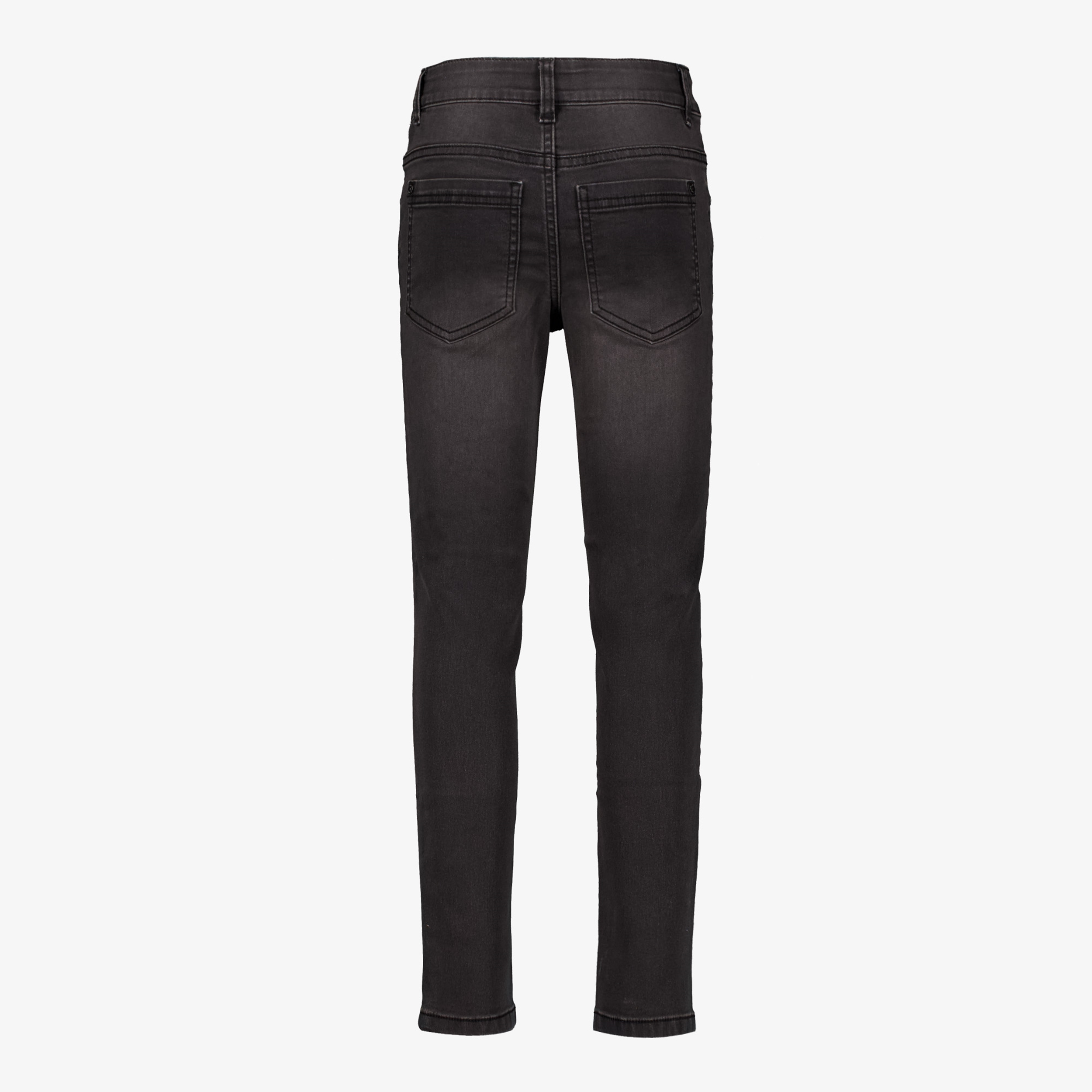 Zwarte jongens jeans uit de Unsigned collectie. Voorzien van een knoop- en ritssluiting en riemlusjes in de boord. De spijkerbroek heeft een slim fit pasvorm, twee voorzakken en twee achterzakken. Dit artikel is gemaakt met 77% biologisch katoen, 22% polyester en 1% elastaan.