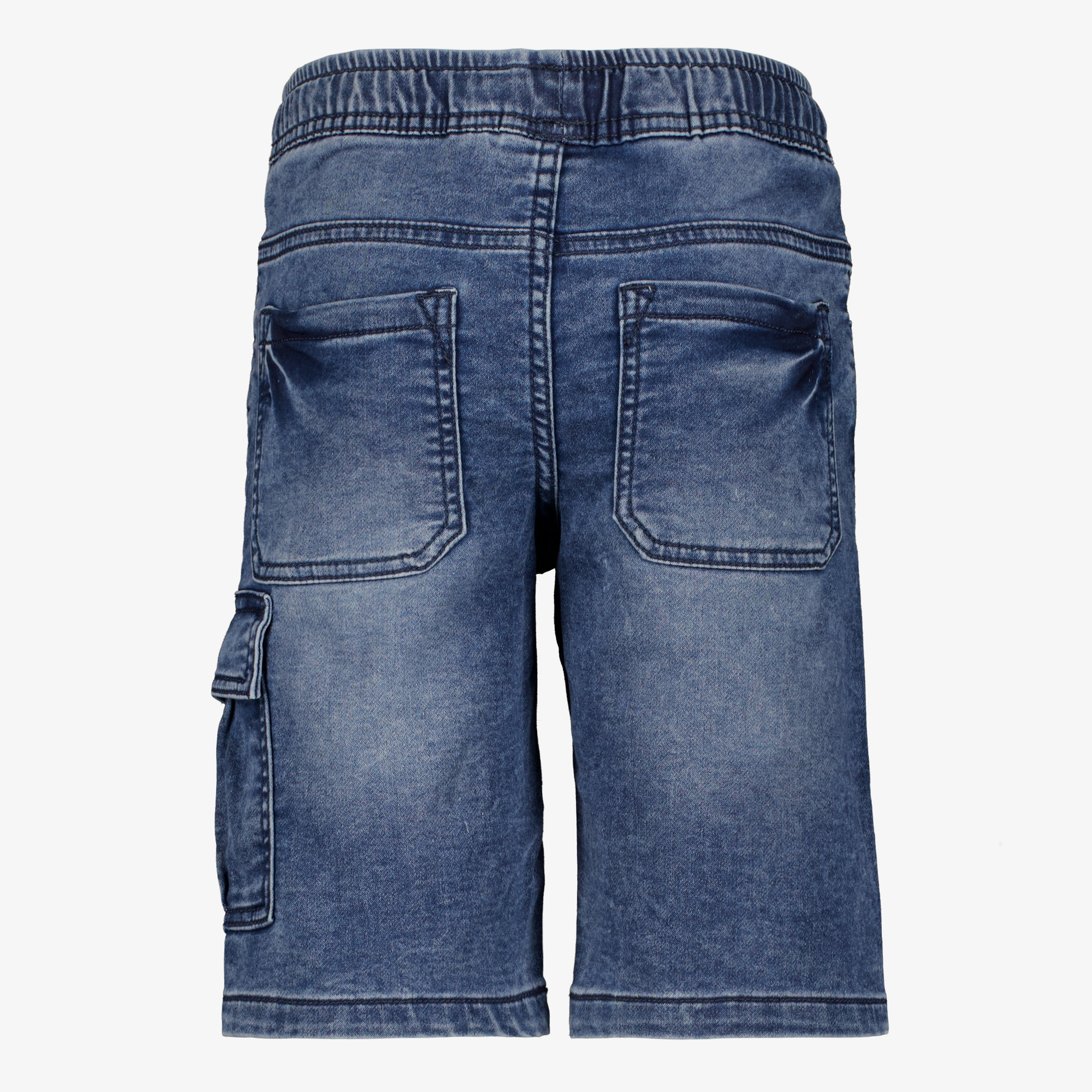 Korte jog spijkerbroek voor jongens. Voorzien van een elastische tailleband met aantrekkoord en twee voor- en achterzakken. De denim short heeft klepzakken op het been en is gemaakt van 78% katoen, 20% polyester en 2% elastaan.