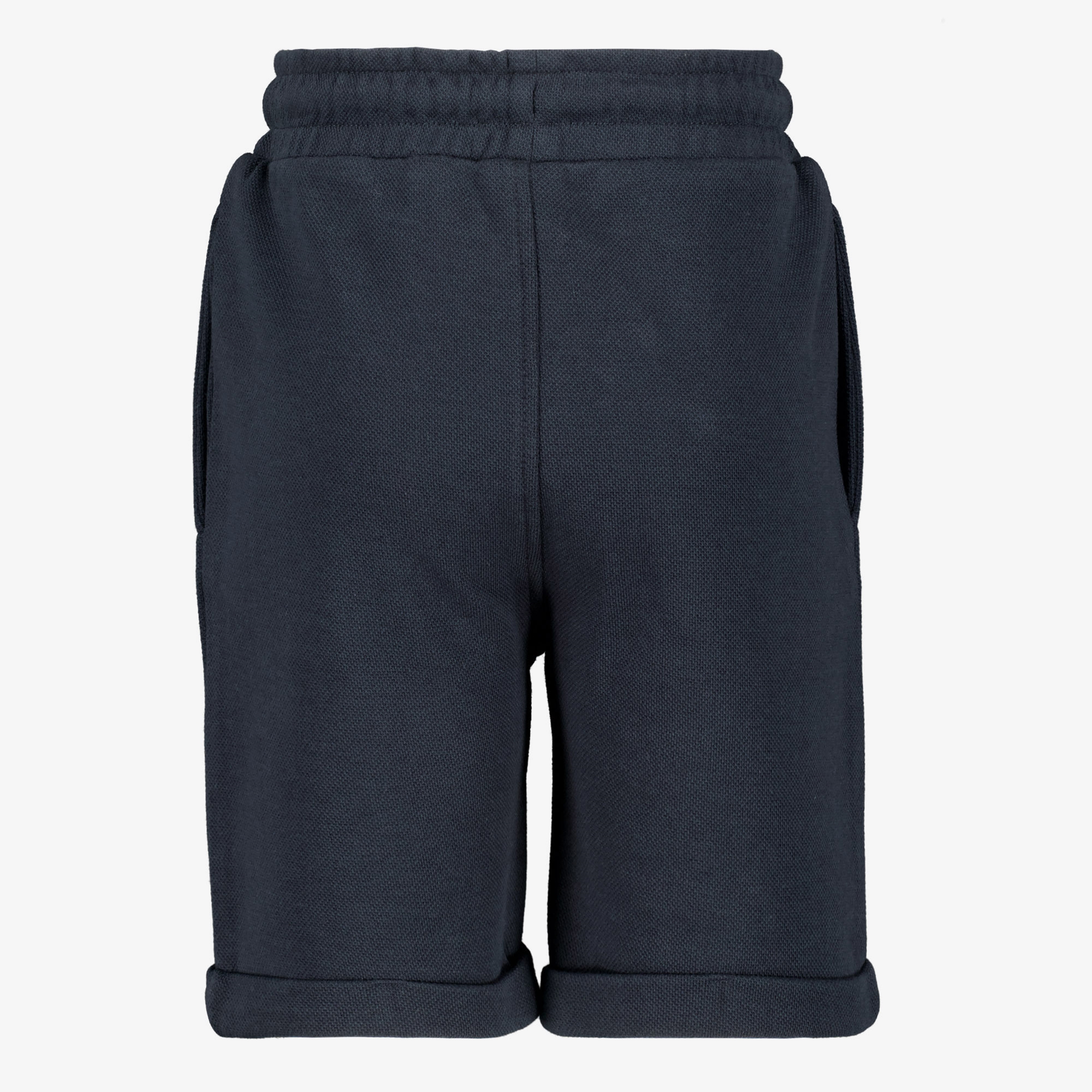 Donkerblauwe pique short voor jongens van Unsigned. Voorzien van een elastische tailleband met aantrekkoordjes en twee steekzakken. De korte broek is gemaakt van 100% katoen.