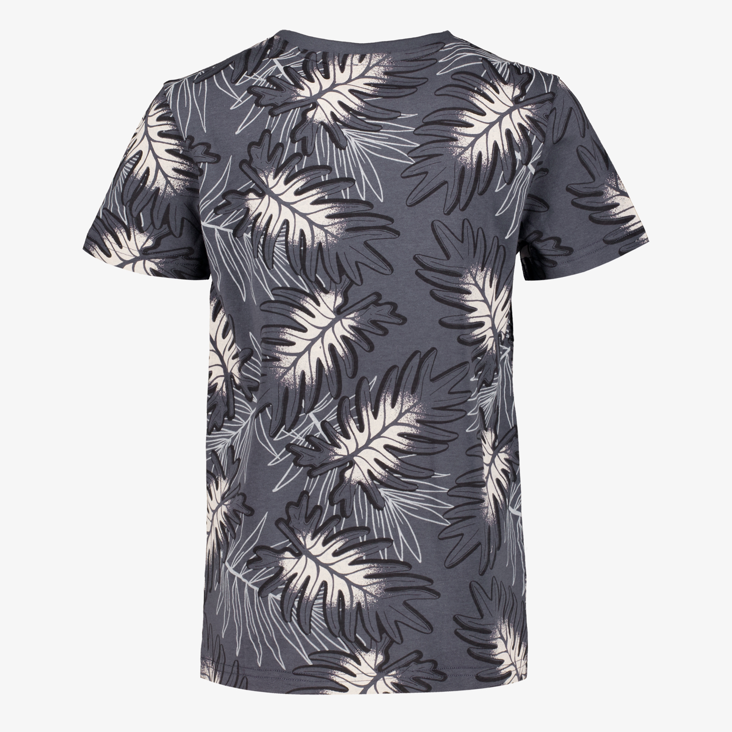 Blauw T-shirt voor jongens van Unsigned. Voorzien van korte mouwen en een ronde hals. Het shirt heeft een all over palmbladeren print en is gemaakt van 100% katoen.
