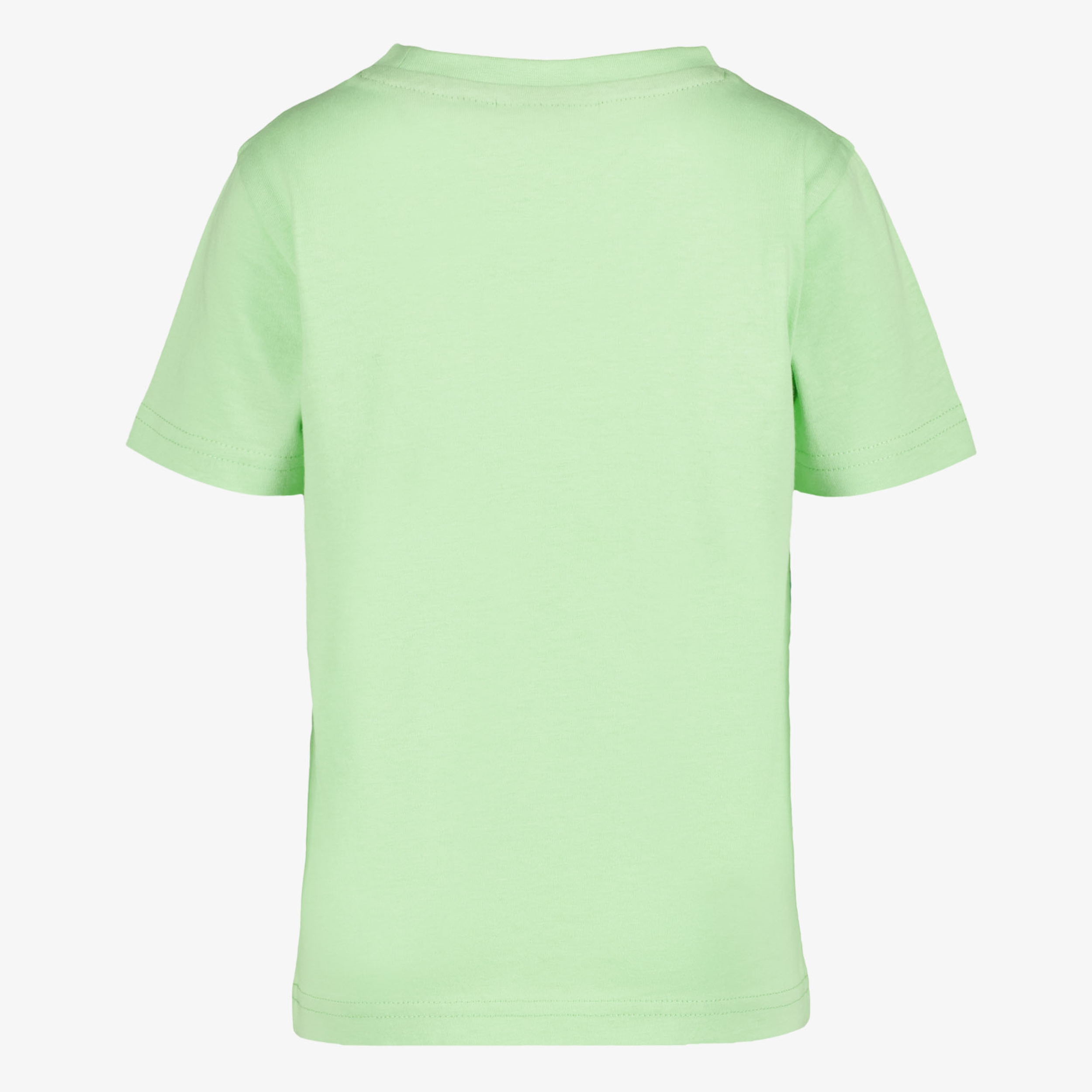 Groen T-shirt voor jongens. Voorzien van korte mouwen, een ronde hals en een opdruk van een dinosaurus aan de voorzijde. Gemaakt van 100% katoen.