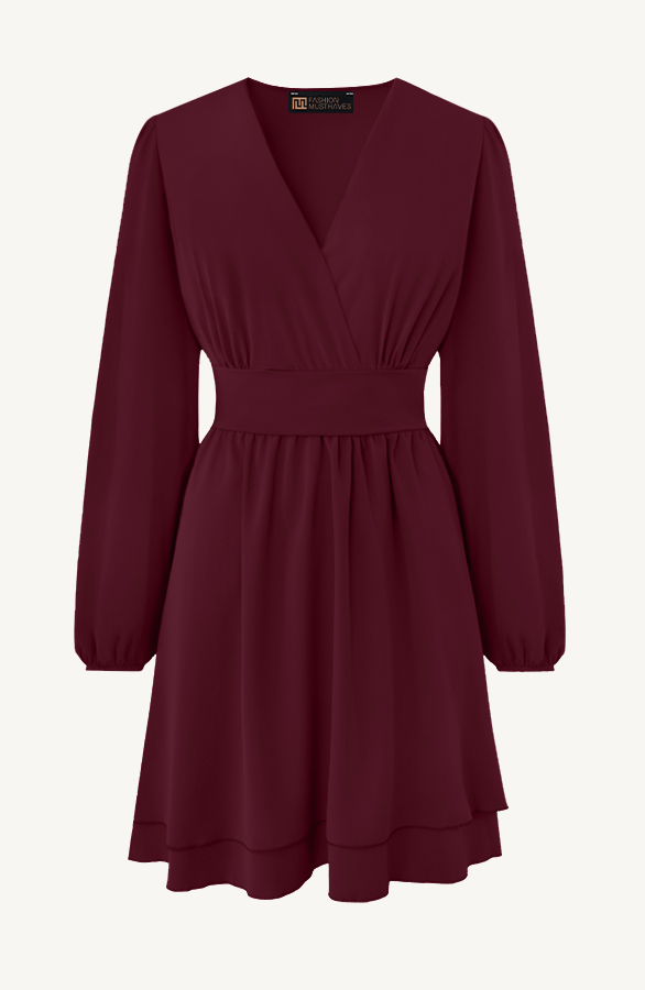 Product: Oohlalaaa.. Deze prachtige jurk is een echte aanwinst voor jouw garderobe! De mooie details zoals het lint om te strikken en de getailleerde pasvorm zorgen voor een elegante en vrouwlijke uitstraling.Sizes: S/M and L/XL Size s/m is suitable for ladies with size S(36 and M(38 Size l/xl is suitable for ladies with size L(40 and XL(42 Fit: valt als normaalDetails: vhals, lint om te strikken, verschillende laagjes and elastiek bij de mouwen Material: 100% PolyesterWashing instructions: 30 graden wasmachineFor best results: niet in de droger, geen wasverzachter