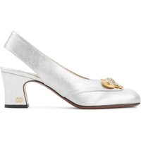 Verhoog avondoutfits met Valentino Garavani slingback pumps, perfect vervaardigd uit luxueus leer. De blokhak versterkt je silhouet en biedt stabiliteit. Een elegante metallic afwerking wordt aangevuld met een decoratief embleem in goudtone versierd met kristallen bij de neus, wat charme en glamour uitstraalt. Een subtiele gouden logo-detail op de hak voegt een verfijnde touch toe, waardoor deze pumps onmisbaar zijn voor verfijnde uitjes.- Samenstelling: 100%’ leer – Kleur: ZilverDe vermelde maten zijn Italiaanse maten. Voor de beste pasvorm, raadpleeg onze maattabel.