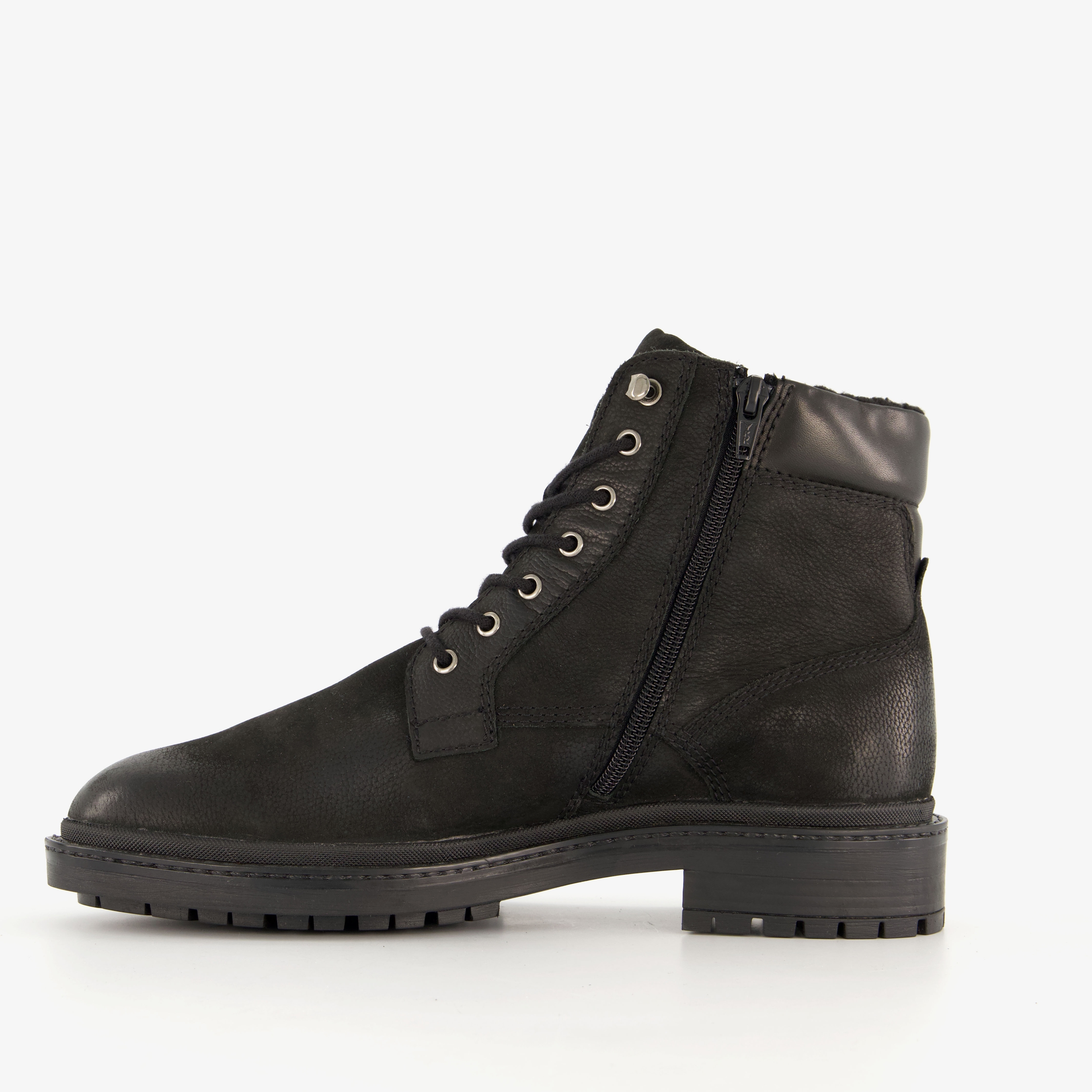 Zwarte Van Beers veterboots voor heren. Het buiten- en binnenwerk zijn gemaakt van leer en de stevige zool met profiel van rubber. Voorzien van een vetersluiting en een comfortabele binnenzool van leer. Deze is niet uitneembaar.