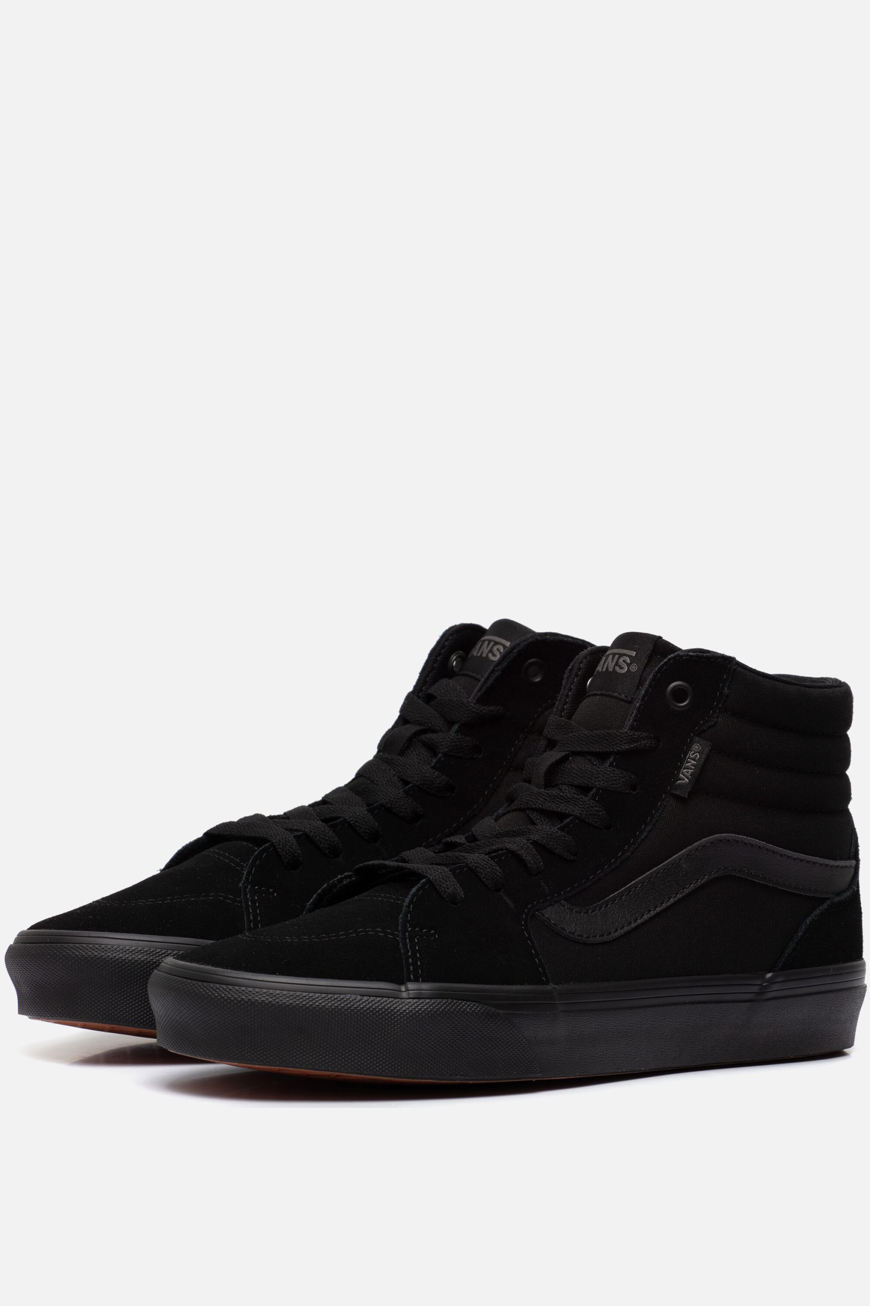 Deze Vans Filmore Hi sneakers in de kleur zwart zijn gemaakt van suede en zijn geïnspireerd op de klassieke Sk8 Vans. De sneakers zijn voorzien van een dubbelgestikt bovenwerk en een dempende binnenzool voor comfort. De voering en comfortabele binnenzool zijn van textiel en de zool is gemaakt van rubber met een dikte van 3,2 centimeter.