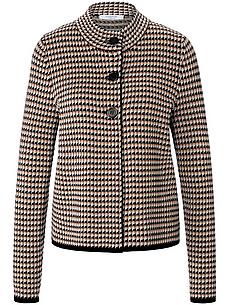 Vest van MAYFAIR BY PETER HAHN met lange mouwen. Dankzij het korte, elegante model past hij uitstekend bij rokken en de nieuwe, iets hoger geknipte broeken. Iets uitlopend model met dubbele staande kraag en grote, in kleur afgestemde knopen. Zomers luxebreisel van zacht garen, gemaakt van ventilerend katoen en soepelvallende viscose. Het moderne, elegante vest met ingenieus gebreide, grafische jacquardmotieven is dankzij het meerkleurige breisel heel goed te combineren. Van 55% katoen, 45% viscose, met viscose uit duurzame bosbouw en milieuvriendelijk geproduceerd. Lengte ca. 54 cm. Dit vest is machinewasbaar. fijnwas tot 30°. chloorbleken niet mogelijk. warm strijken. chemische reiniging. drogen in de droger niet mogelijk. 36, 38, 40, 42, 44, 46, 48