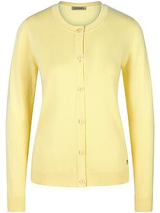Vest van UTA RAASCH. In een licht getailleerd model met een ronde halslijn, 1/1 mouw en knoopsluiting met ton-sur-ton knopen. Dankzij het fijne, gladde breisel voelt het vest aangenaam licht aan op de huid. Geribde boorden aan de zoom en mouwen zorgen voor een comfortabele pasvorm. 72% viscose, 28% polyamide. Lengte ca. 60 cm. Dit vest is machinewasbaar. speciale fijnwas tot 30°. chloorbleken niet mogelijk. warm strijken. chemische reiniging, veilig. drogen in de droger niet mogelijk. 46