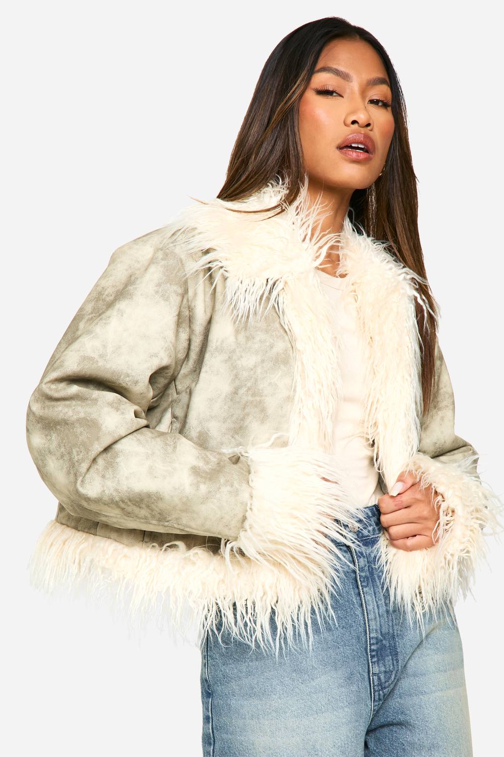 Home » Dames » Jassen » Leren & jassen » Vintage-Look Nep Leren Jas Met Namaak Bontaccent, Grey