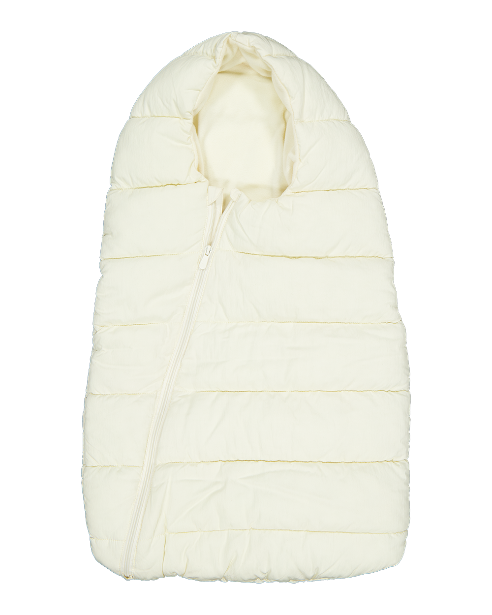 Deze beige voetenzak is geschikt voor baby's en heeft een gewatteerde, zachte uitstraling. De voetenzak sluit met een rits die schuin over de voorkant loopt, wat het gemakkelijk maakt om je baby in en uit de zak te halen. Door de samenstelling van viscose en polyamide met een polyester voering en vulling blijft je baby comfortabel en warm tijdens koudere dagen.
