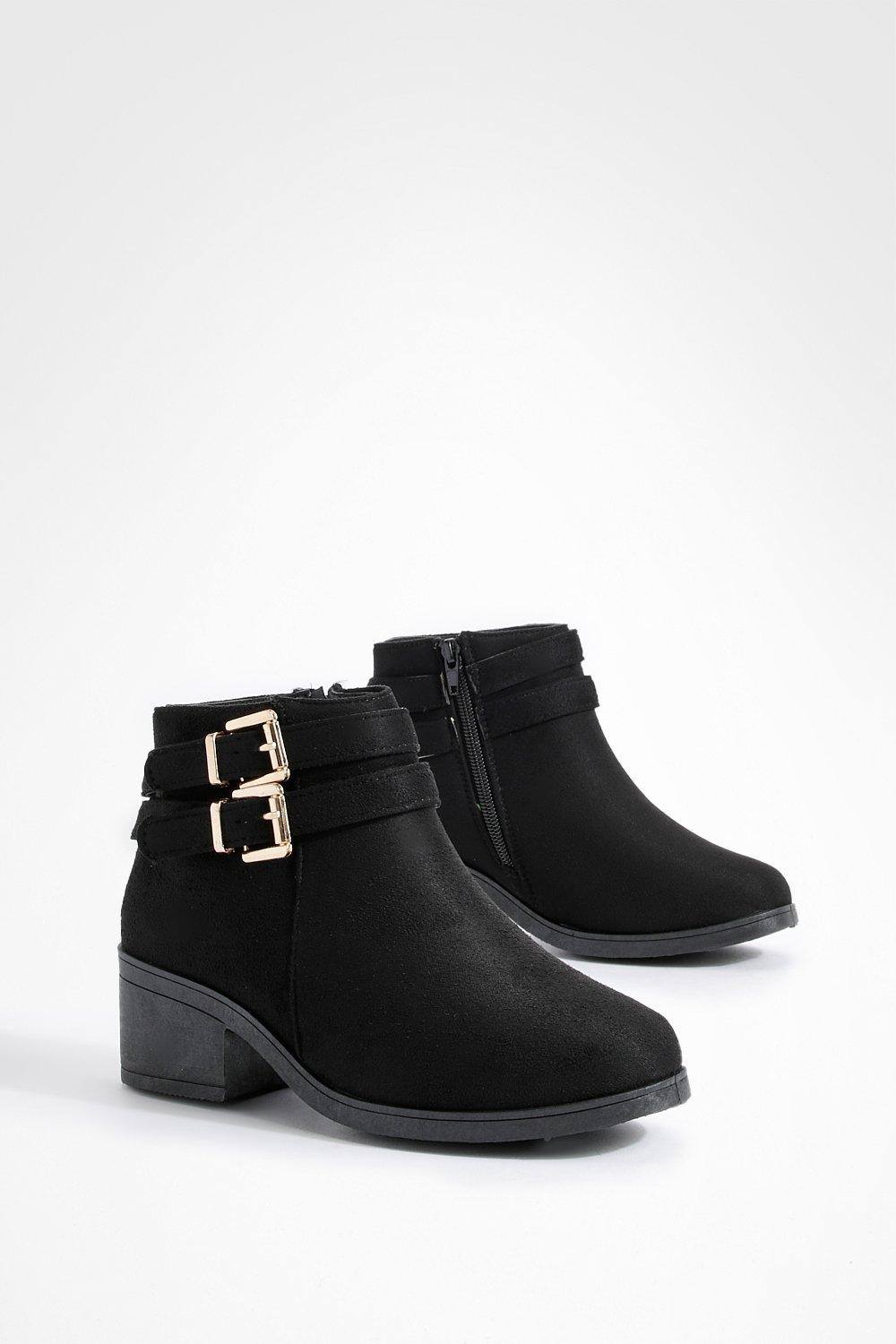 Home » Dames » Schoenen » Enkellaarzen » Wide Fit Nep Suède Chelsea Boots Met Twee Gespen En Blokhak, Black