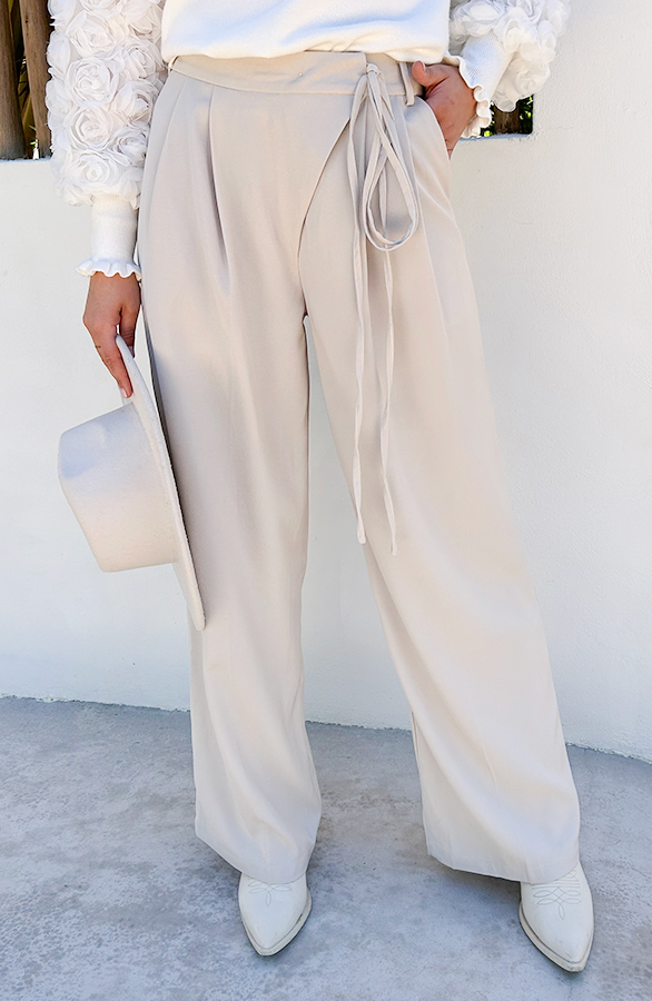 Product: Deze stijlvolle Wide Fit Pantalon in beige met een elegante strik taille biedt zowel comfort als een modieuze uitstraling. Perfect voor elke gelegenheid, van casual tot chique!Sizes: S, M, L and XL Size s is suitable for ladies with size S(36 Size m is suitable for ladies with size M(38 Size l is suitable for ladies with size L(40 Size xl is suitable for ladies with size XL(42 Fit: valt als normaalModel: 178 cm and wears size SDetails: high waist, striksluiting and wide leg Materials: 5% Spandex, 95% PolyesterWashing instructions: handwasFor best results: niet in de droger, geen wasverzachter