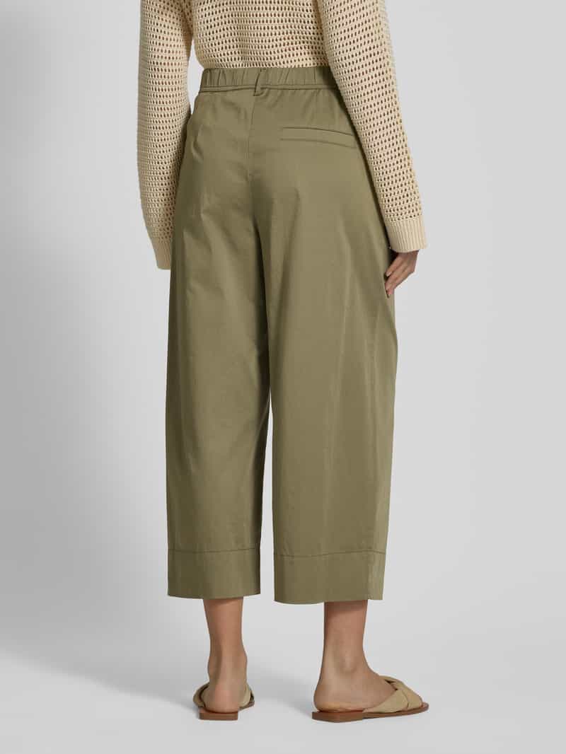 Bandplooibroek van Marc Cain voor dames;Mix van katoen en elastaan;Wide leg;Verkort model;Riemlussen;Bandwijdte bij maat 36: 38 cm;Binnenbeenlengte bij maat 36: 60 cm