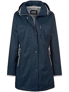 Windwerende en waterafstotende jas van GREEN GOOSE. Van slijtvast micro-katoen. Iets langer model in mooie verzorgde city-stijl, met contrastkleurig ribband bij de kraag, zakken en mouwuiteinden. Met een afritsbare capuchon, hoog te sluiten staande kraag, drukknoopsluiting en blinde 2-wegrits. De 2 ritszakken, de borstzak met ritssluiting en de binnenzak met drukknoop bieden betrouwbare bergruimte. 51% polyester, 49% katoen. Met een netvoering boven aan de achterkant en normale geweven voering van 100% polyester. Lengte ca. 82 cm. Deze jas is machinewasbaar. fijnwas tot 30°. chloorbleken niet mogelijk. koud strijken. chemische reiniging. drogen in de droger niet mogelijk. 36, 38, 40, 42, 44, 46, 48