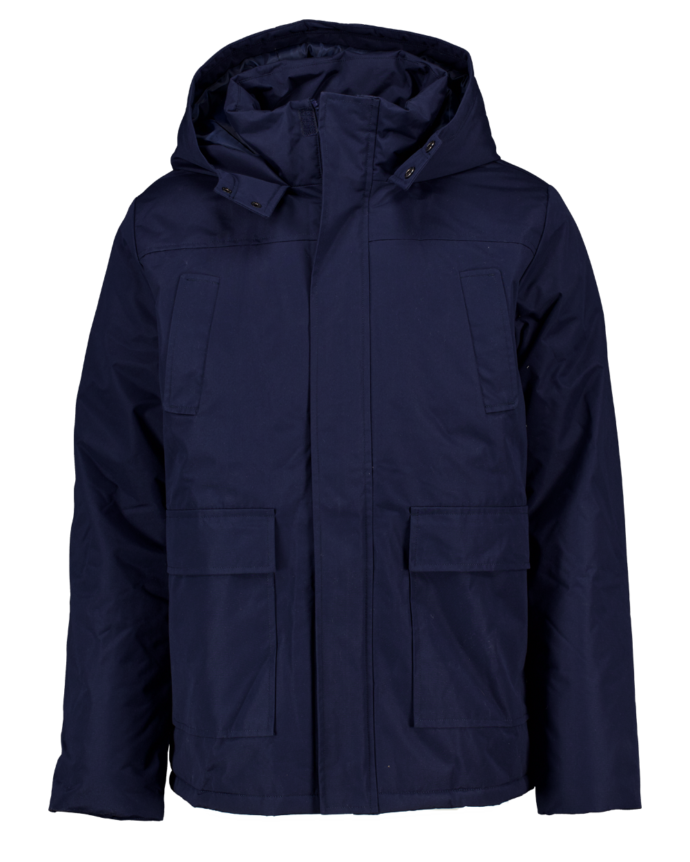 Deze heren winterjas is gemaakt van 100% polyester en heeft een effen blauwe kleur. De jas heeft een capuchon en twee grote zakken aan de voorkant, handig om je handen warm te houden of spullen in mee te nemen. De sluiting aan de voorkant is afgedekt, wat extra bescherming biedt tegen wind en kou. Geschikt voor koude dagen.