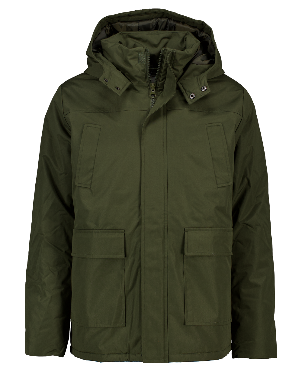 Deze groene winterjas voor heren is gemaakt van stevig, glad polyester. Met capuchon, rits en drukknoopsluiting. De jas heeft vier zakken aan de voorkant, waarvan twee met klep. Handig voor het meenemen van spullen. De jas is geschikt voor koude dagen en houdt goed warm. Fijn voor dagelijks gebruik in de winter.