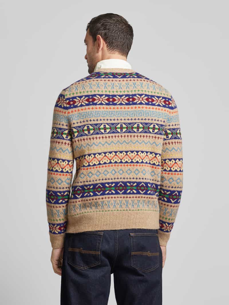 Wollen herenpullover van Polo Ralph Lauren;Wolmix met katoen;Recht model;Model ‘FAIRISLE’;Ronde hals;Ribboorden;Ruglengte bij maat M: 72 cm;Mouwlengte bij maat M: 70 cm
